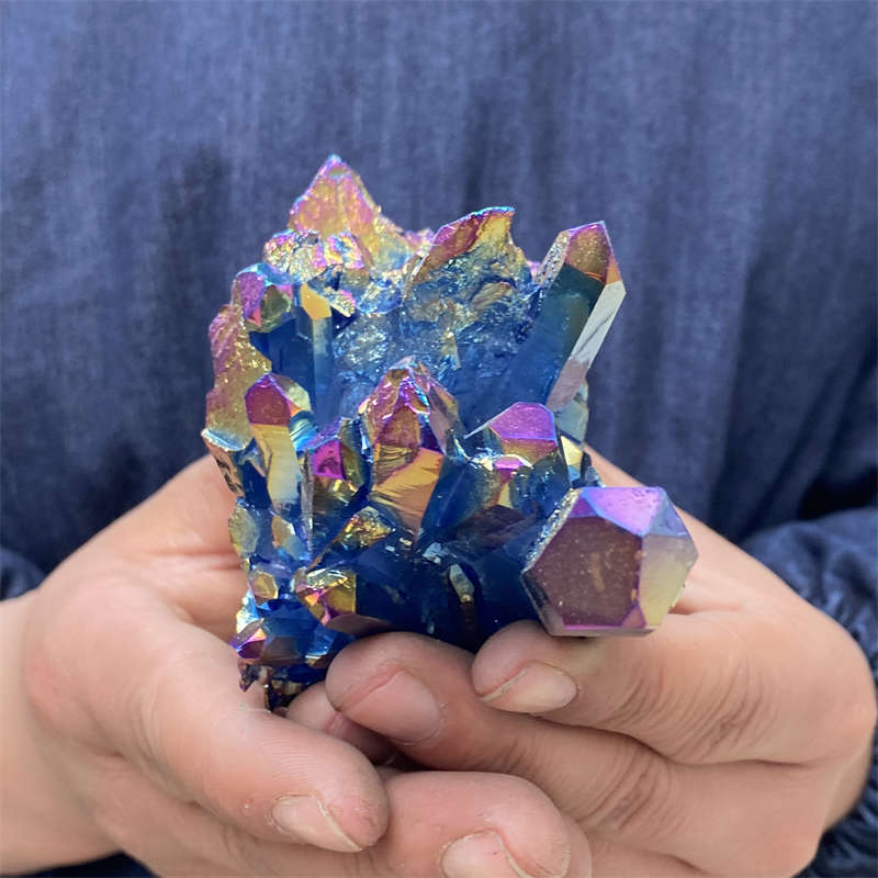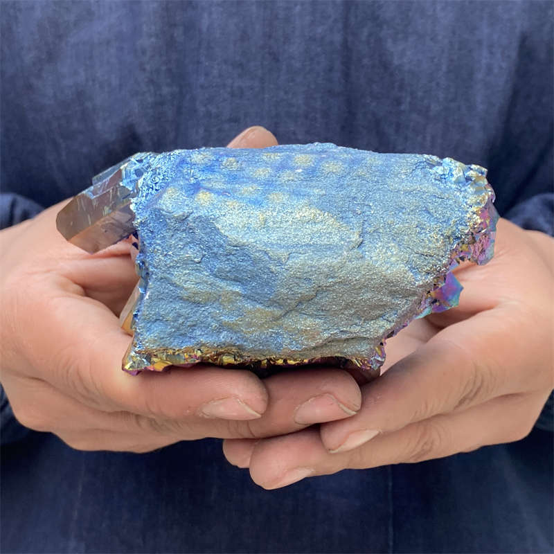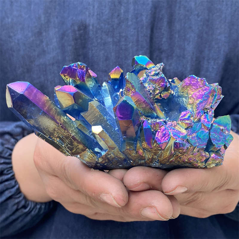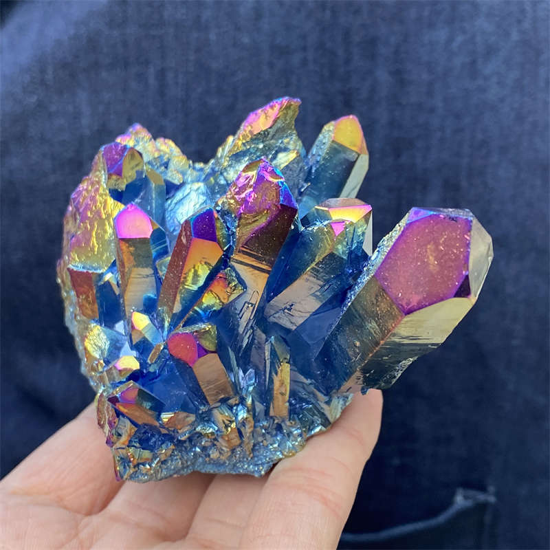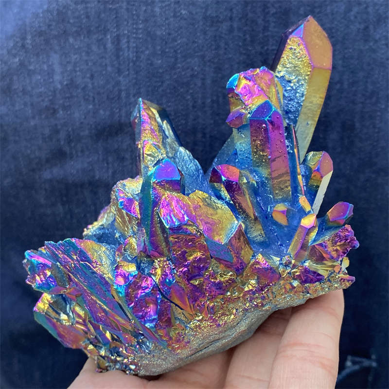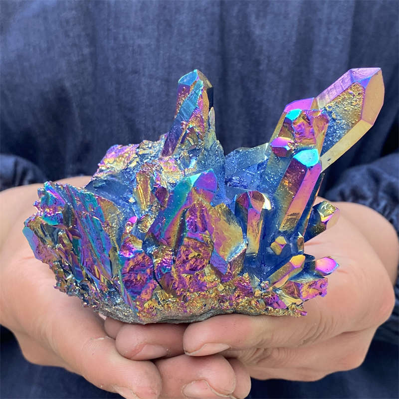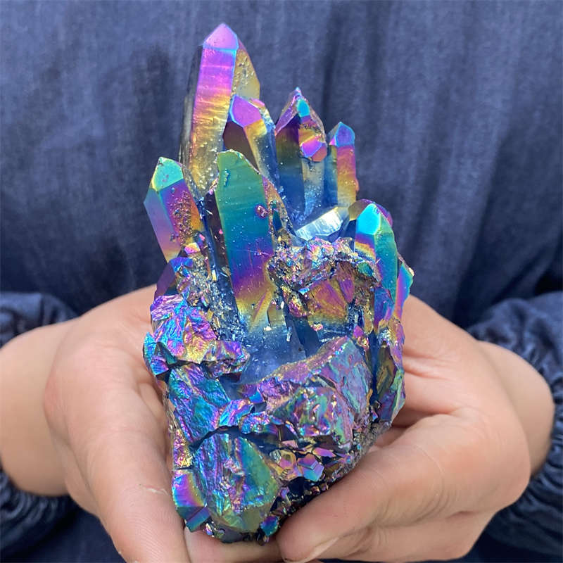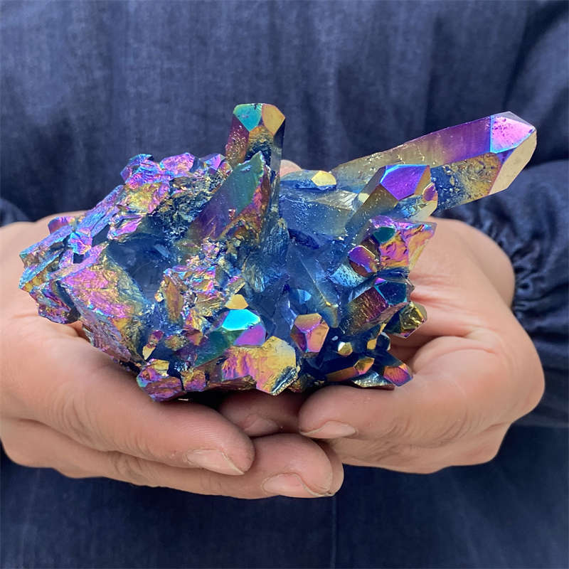 380g Electroplate Rainbow cluster quartz crystal mineral specimen reiki healing