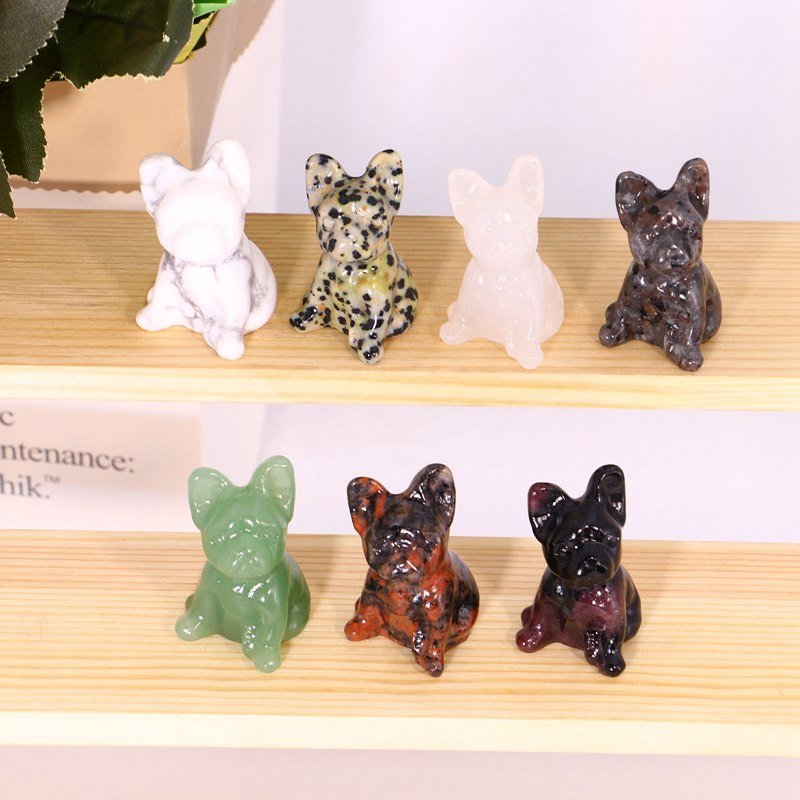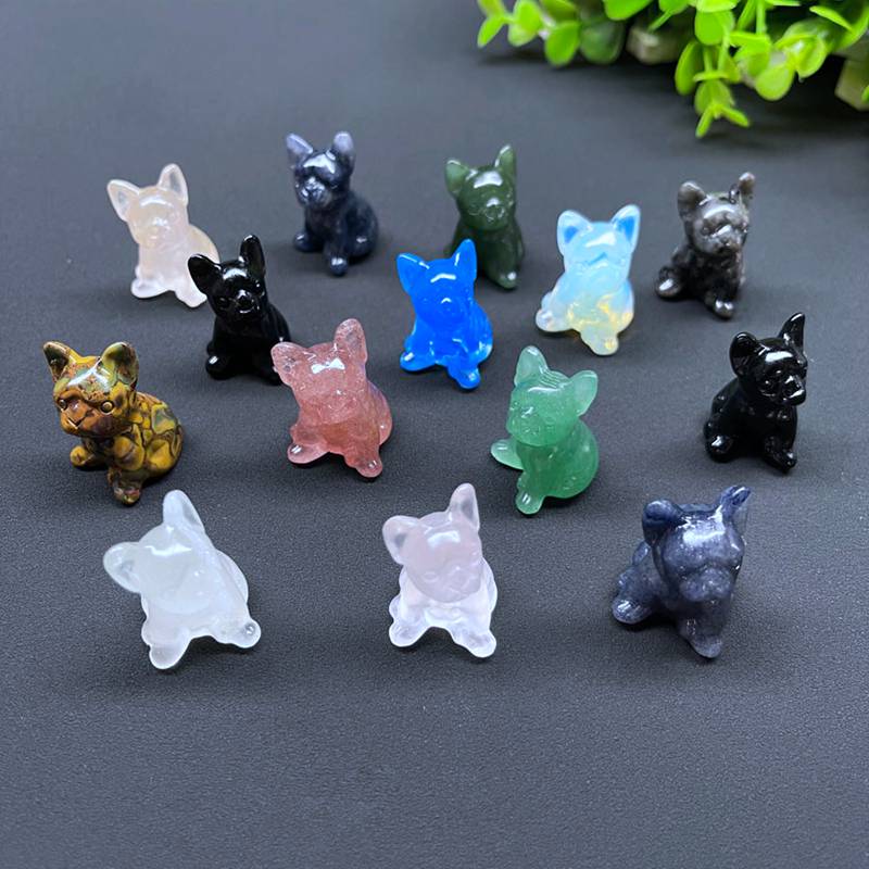 -Type:Natural quartz crystal stone carving french bulldog