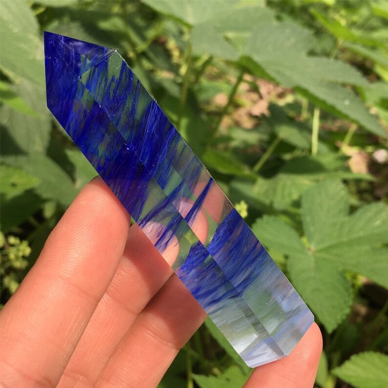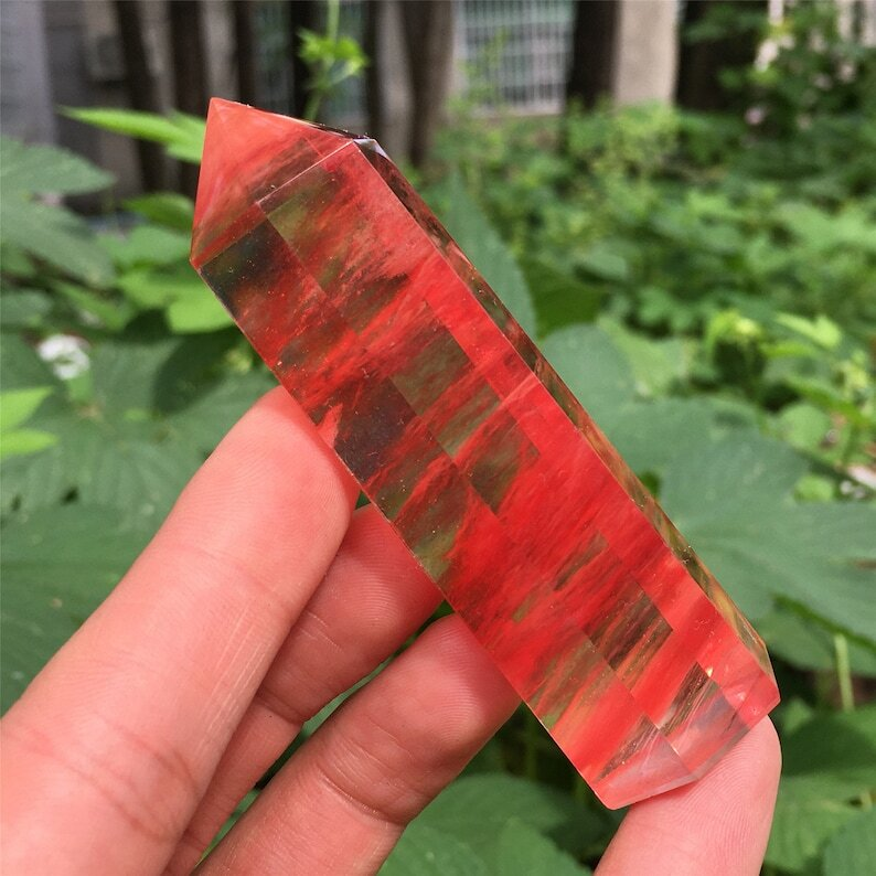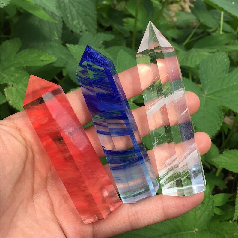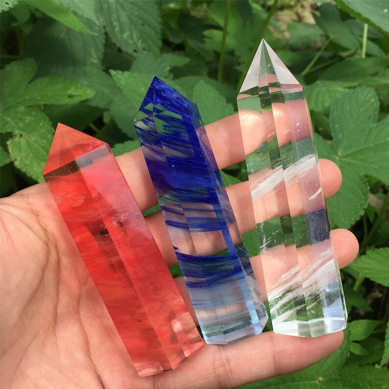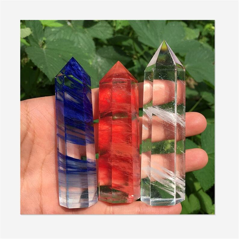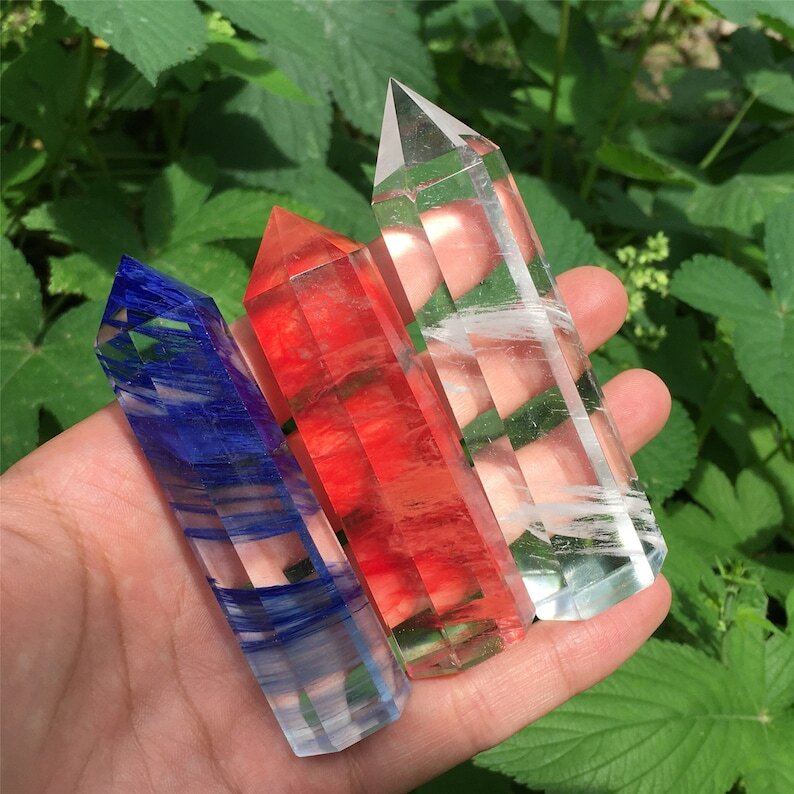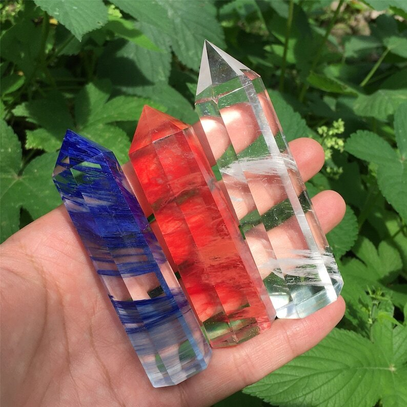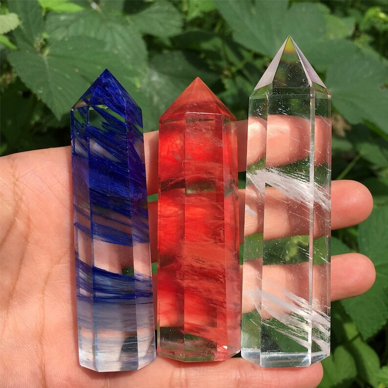 3PC Red+Blue+Clear Melting Stone Obelisk Quartz Crystal Wand Point Decoration