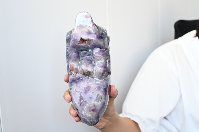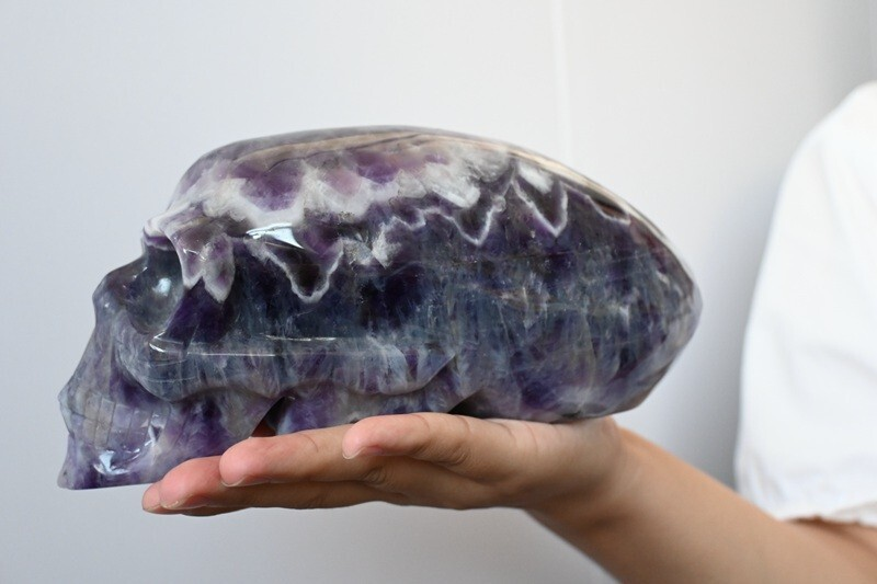 4.2LB Top Natural Dreamy Amethyst Quartz hand Carved Crystal Alien Skull reiki