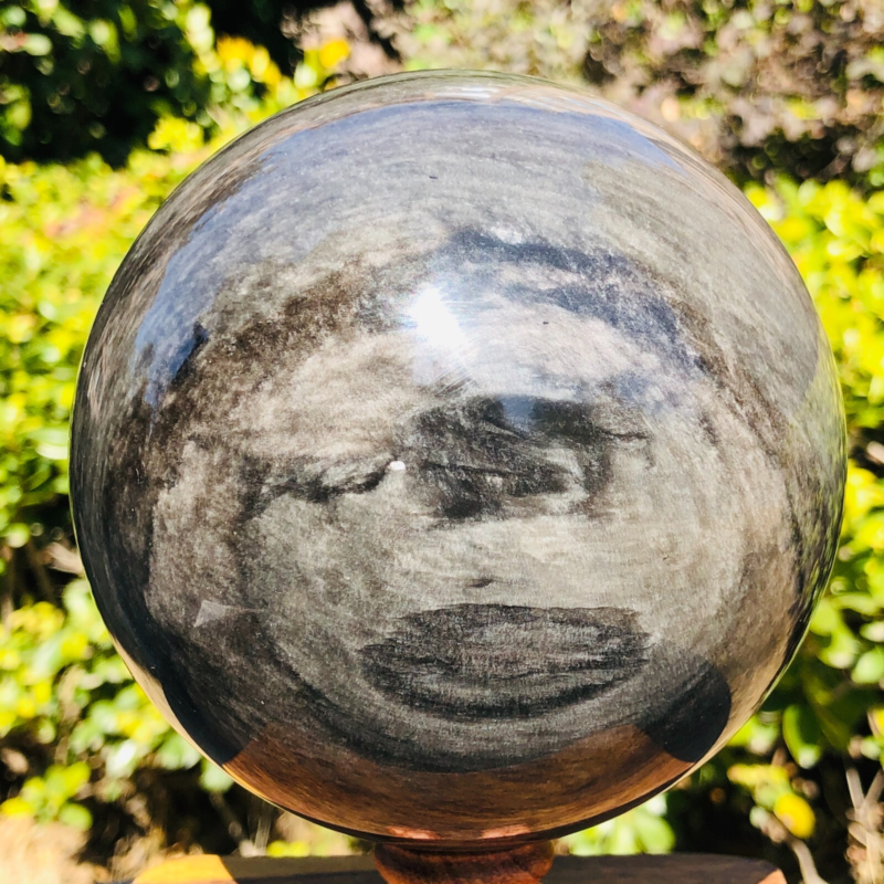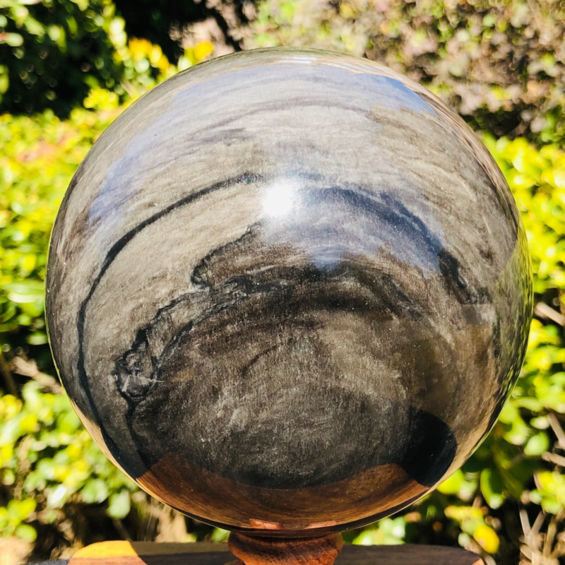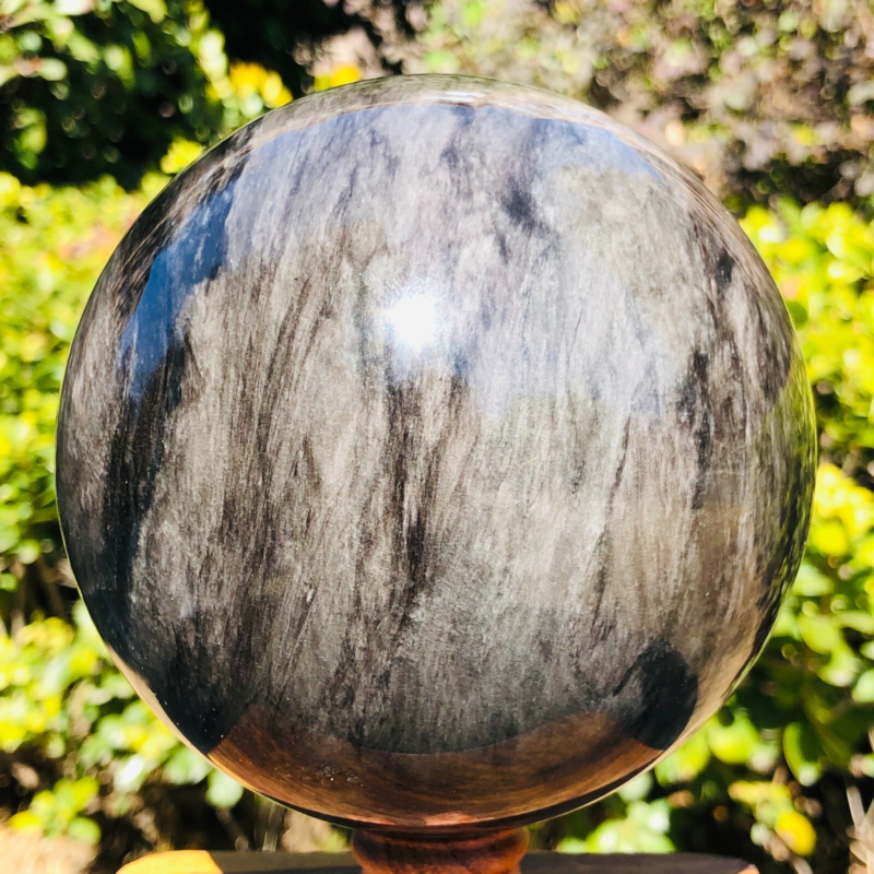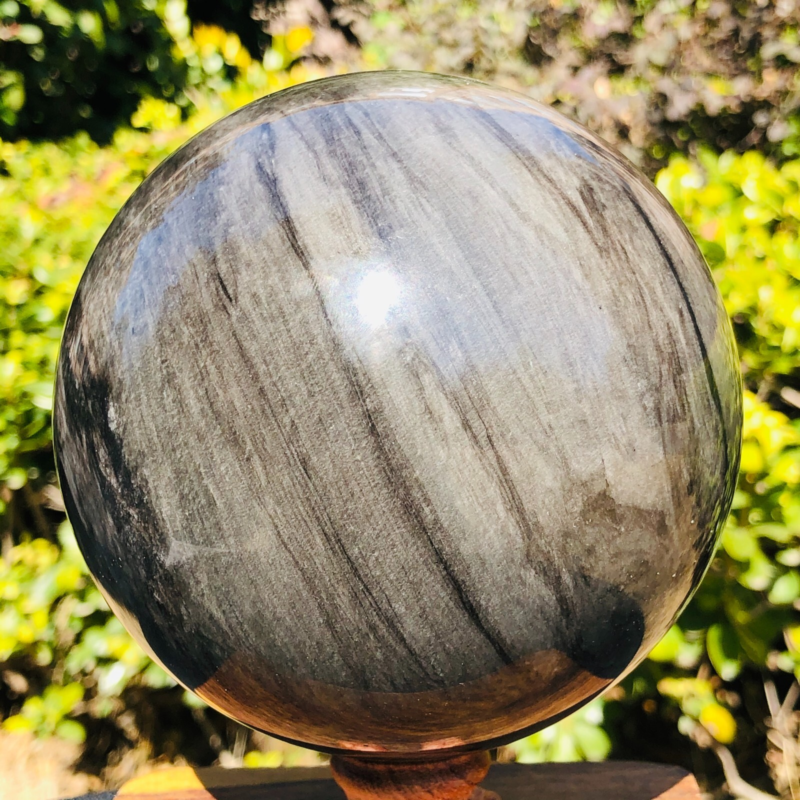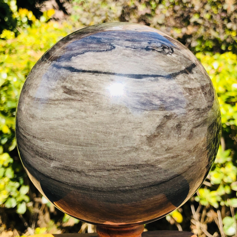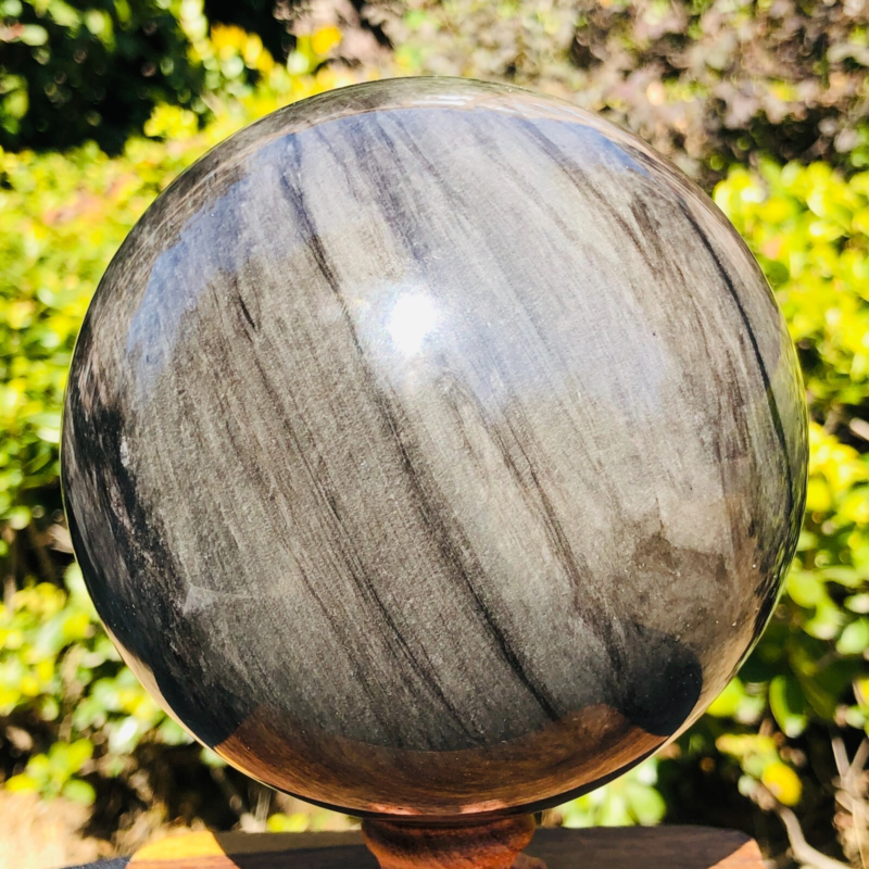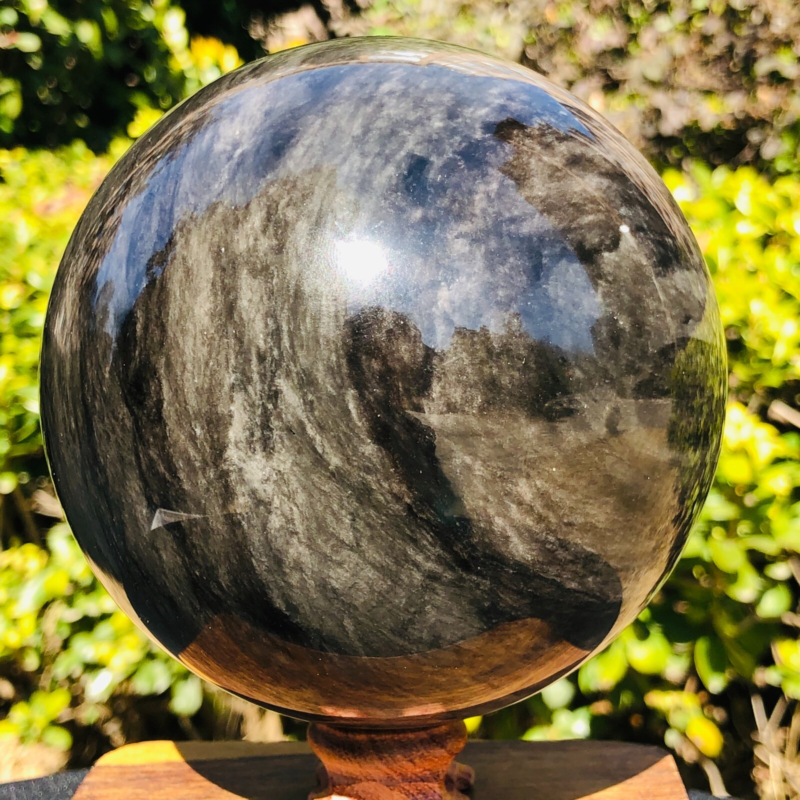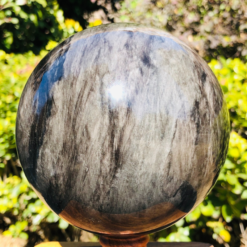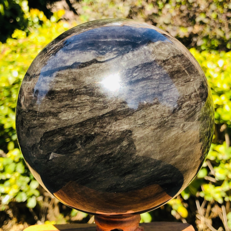 4.55LB Natural Silver Black Obsidian Sphere Quartz Crystal Ball Healing