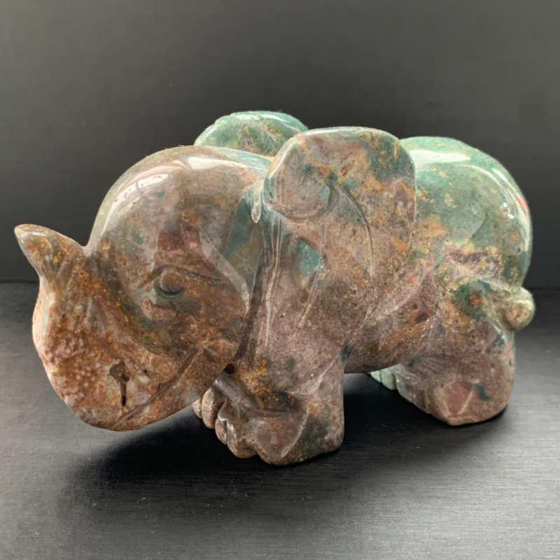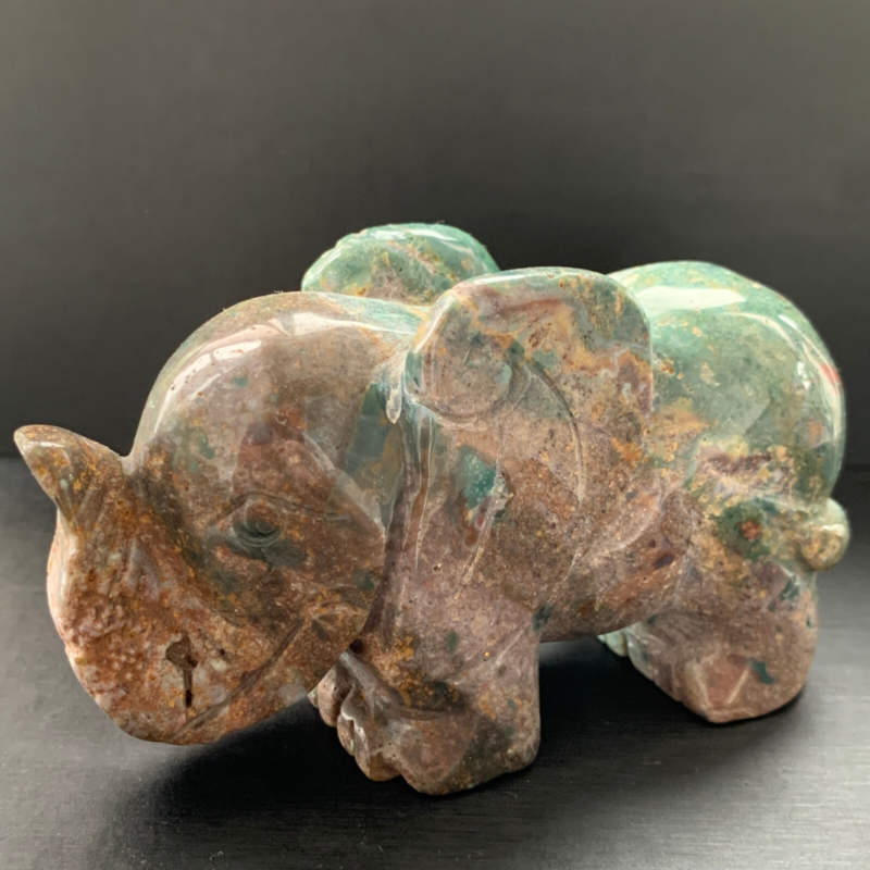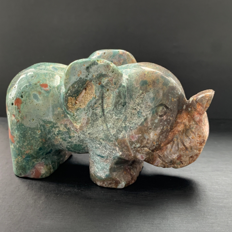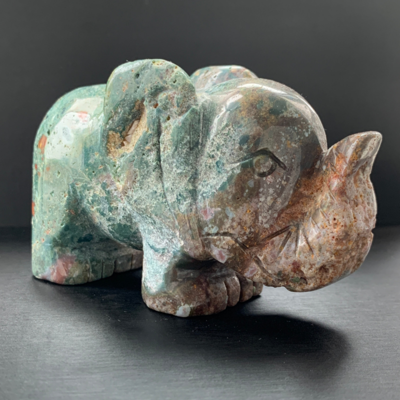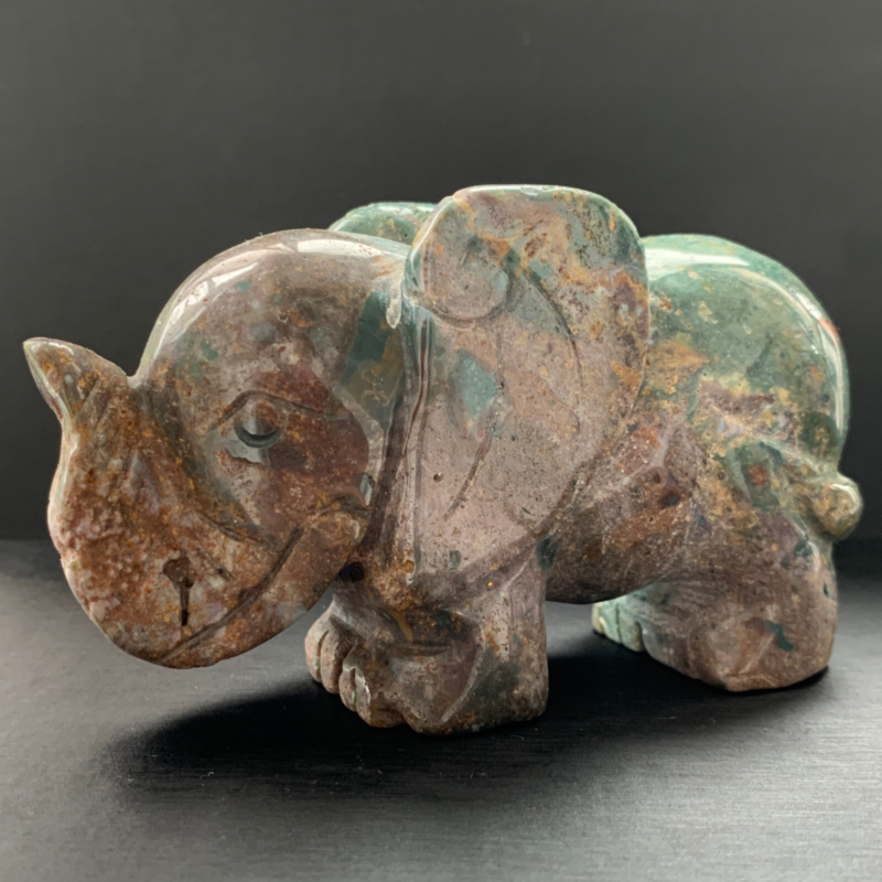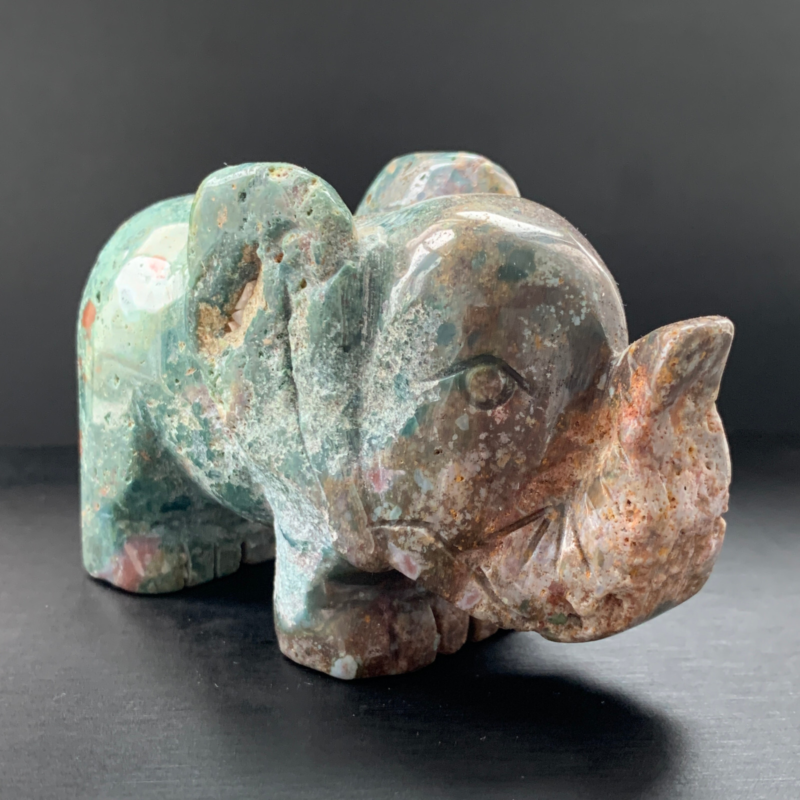 438GNatural Ocean Jasper Quartz Carved Elephant Skull Crystal Reiki Healing Gemstone