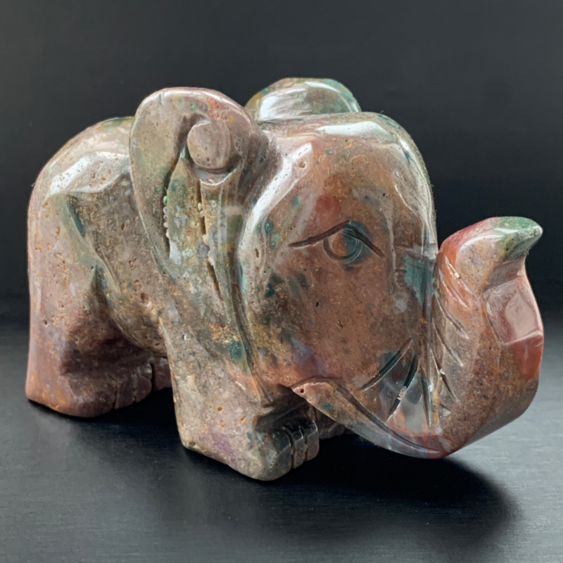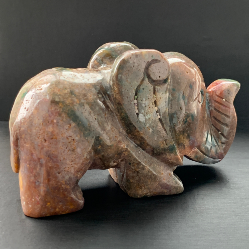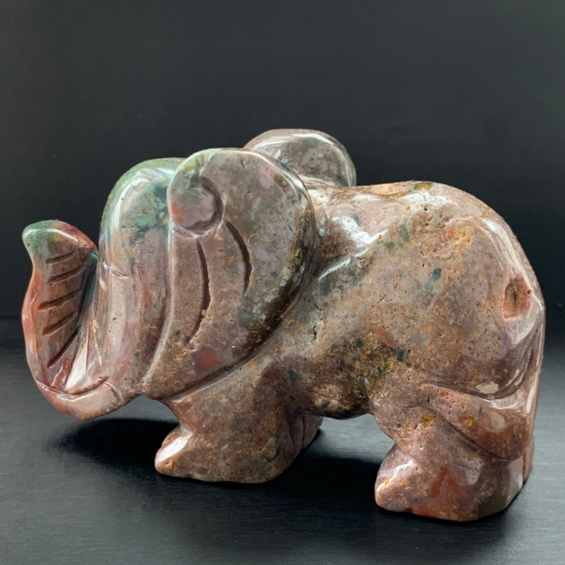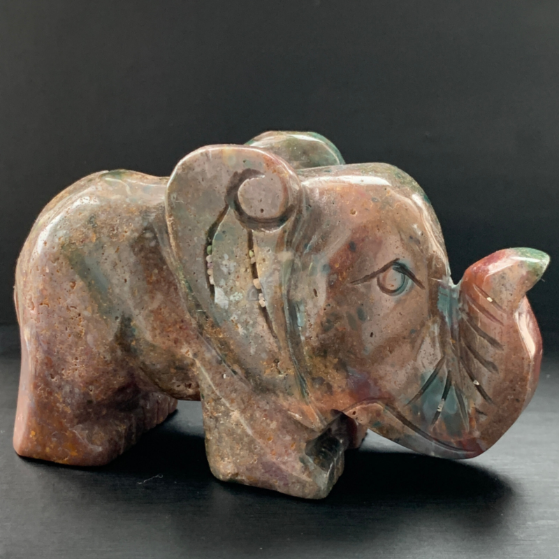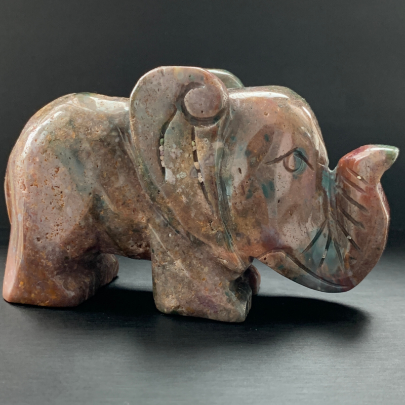 493 Gram Natural Ocean Jasper Quartz Carved Elephant Skull Crystal Reiki Healing Gemstone