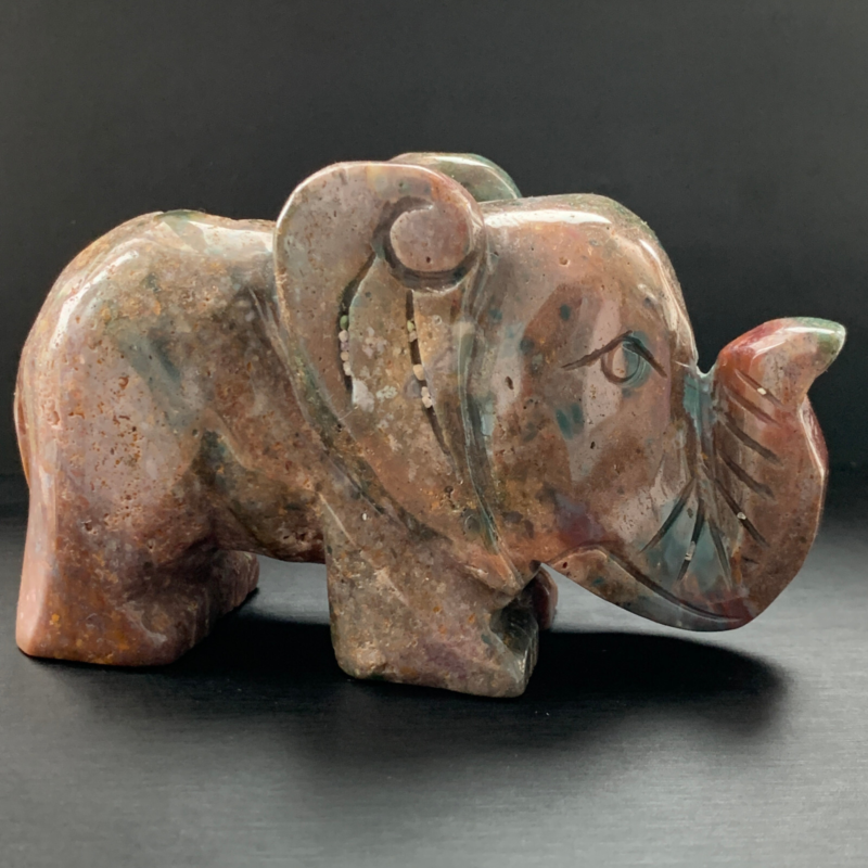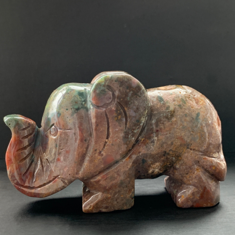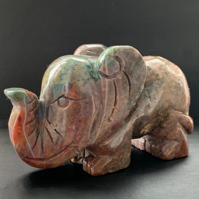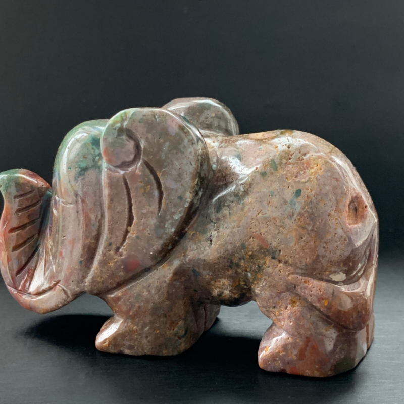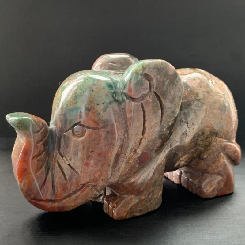 493 Gram Natural Ocean Jasper Quartz Carved Elephant Skull Crystal Reiki Healing Gemstone