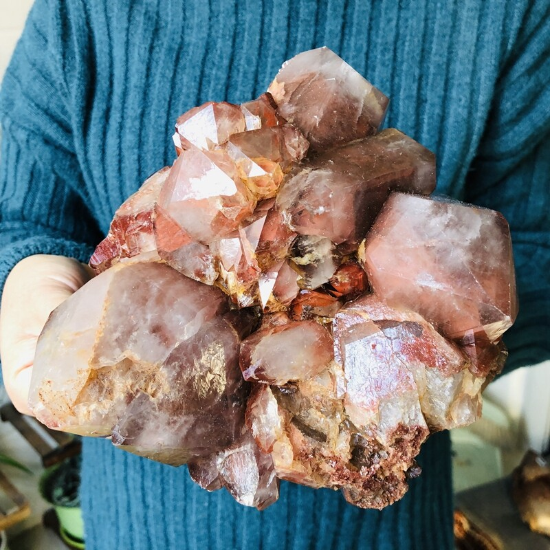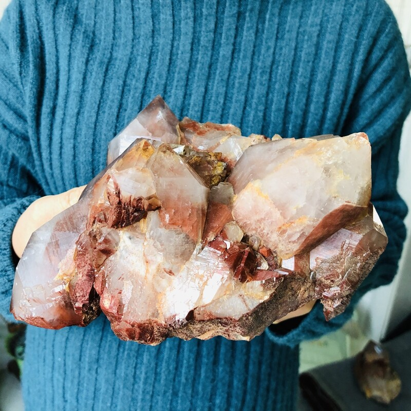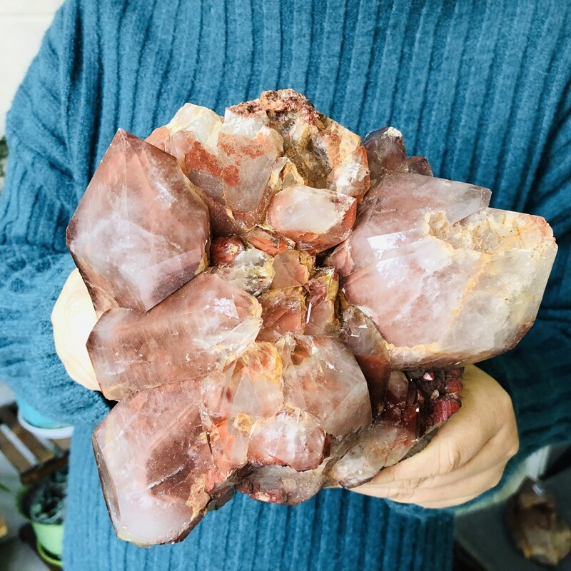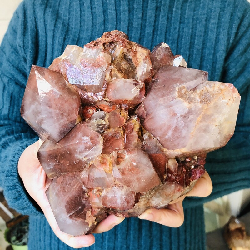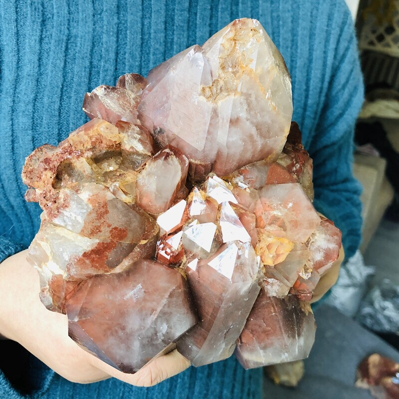 5.2lb Natural Red Ghost Pyramid Quartz Crystal Cluster Vug Raw Mineral Specimens