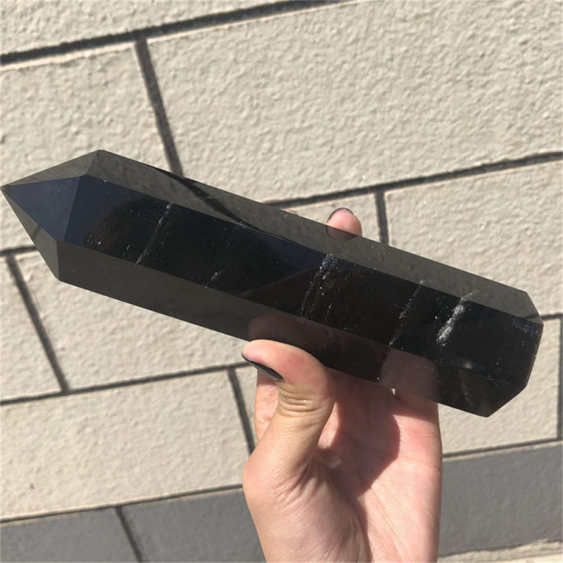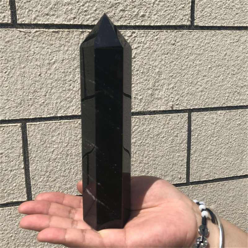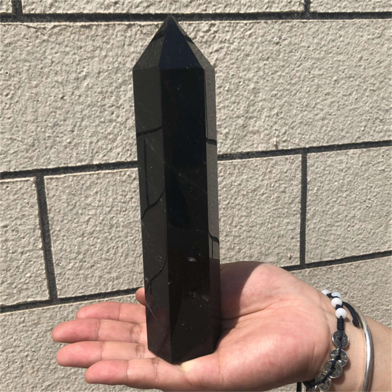 510g Natural Obsidian Obelisk Quartz Crystal Point Wand Tower Healing