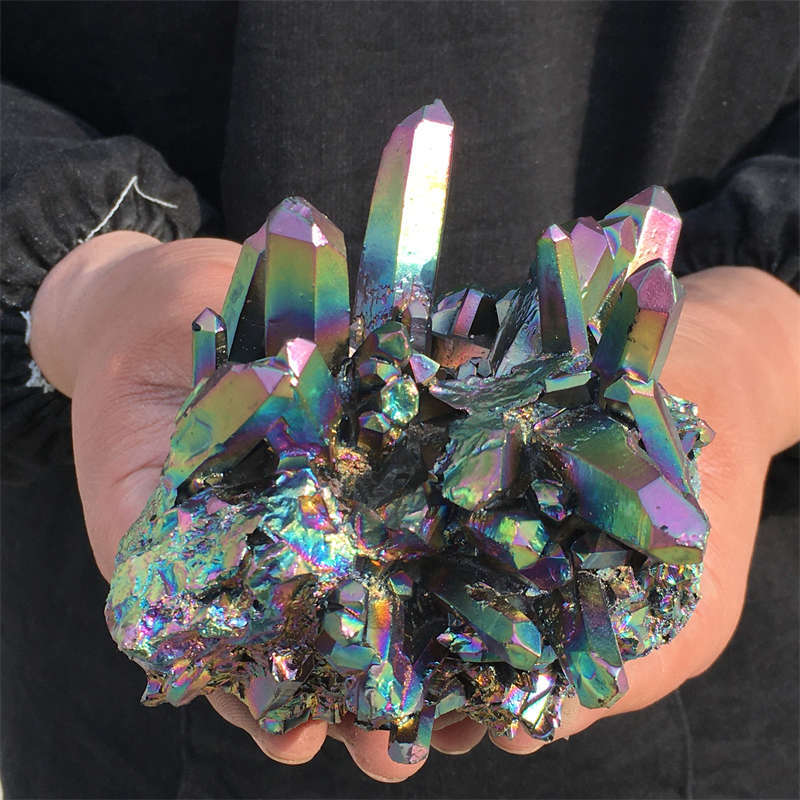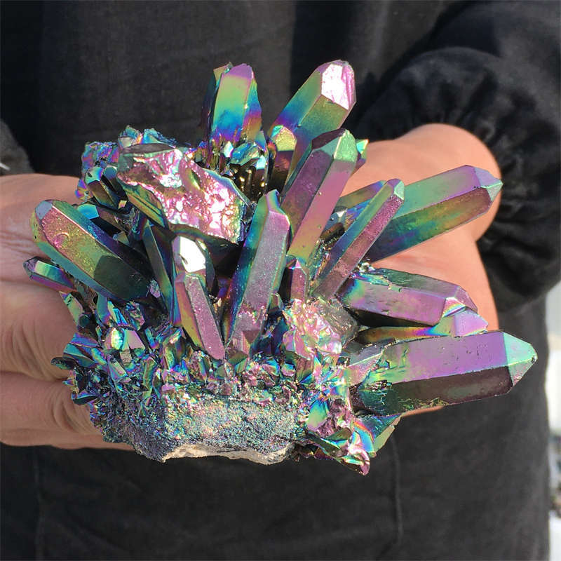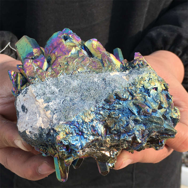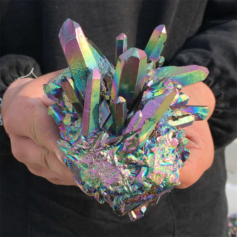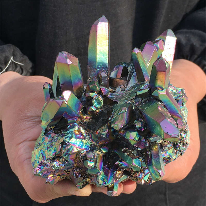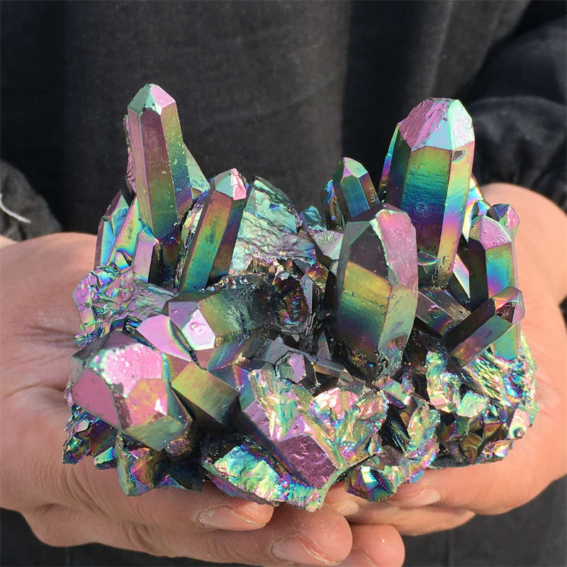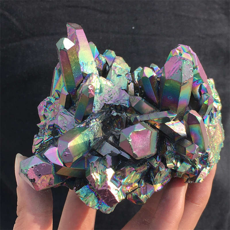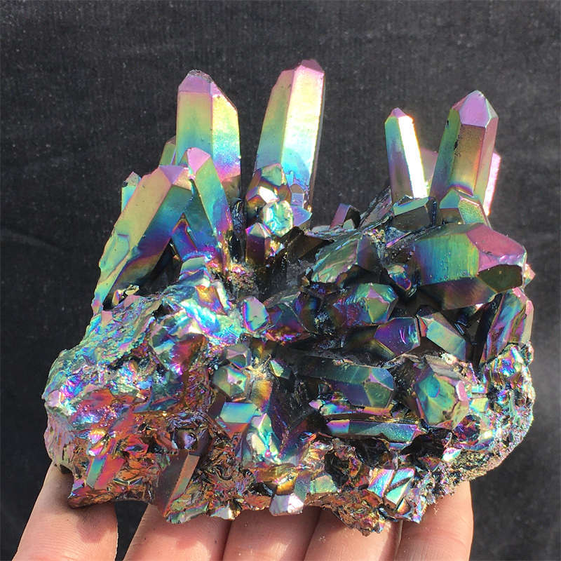 580g Electroplate Rainbow cluster quartz crystal mineral specimen reiki healing