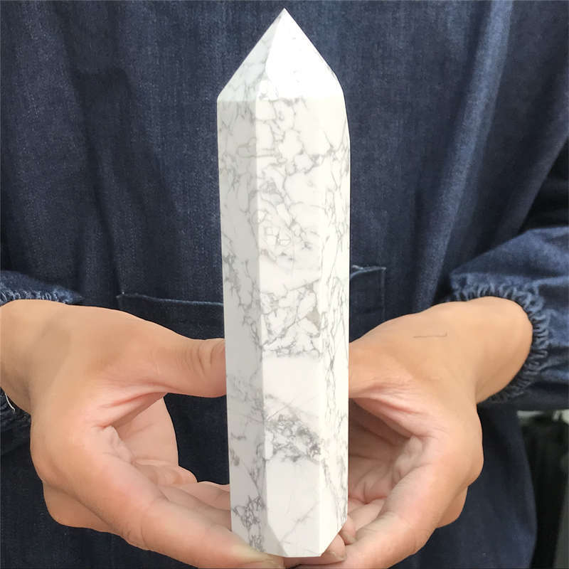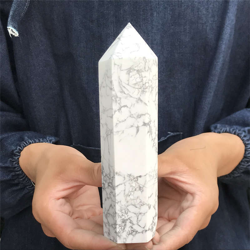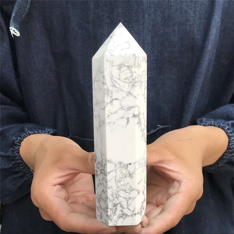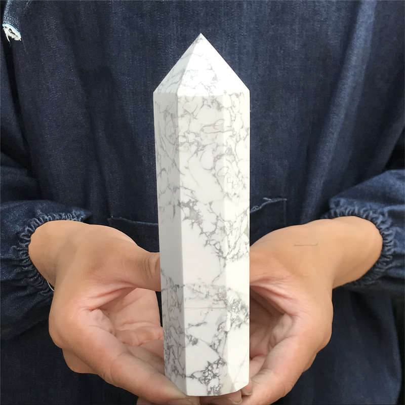 590g Howlite Obelisk Quartz Crystal Wand Point Tower Decor Healing Gem