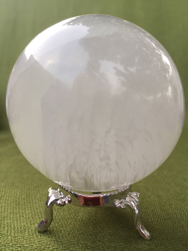 60 mm Selenite Sphere With Stand White Selenite Crystal Sphere Gypsum Reiki Heal