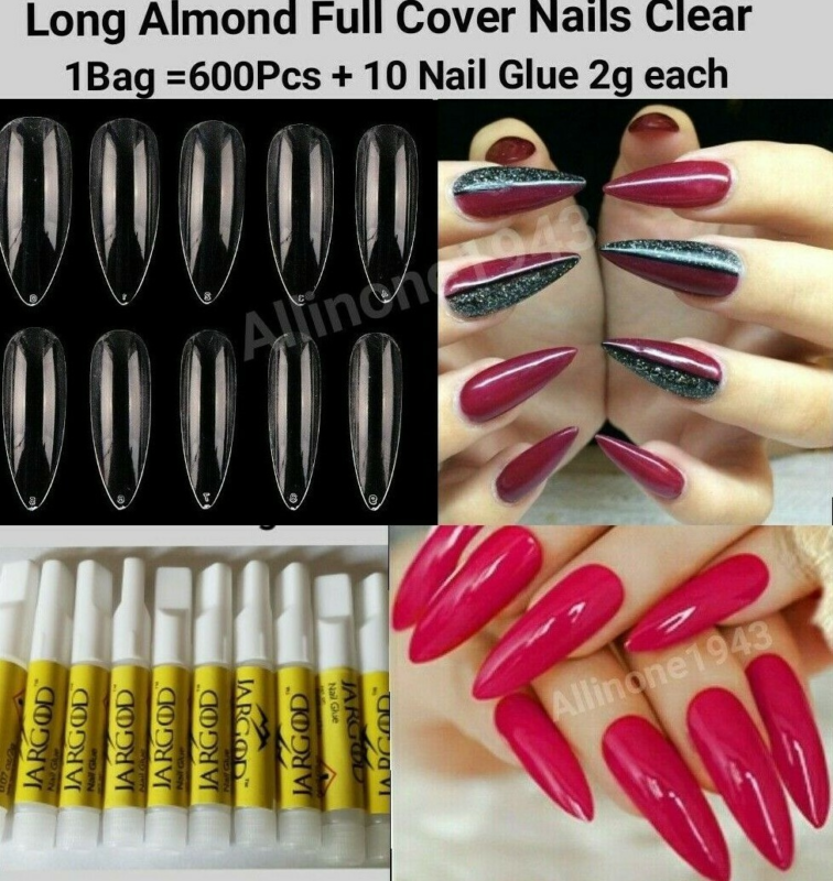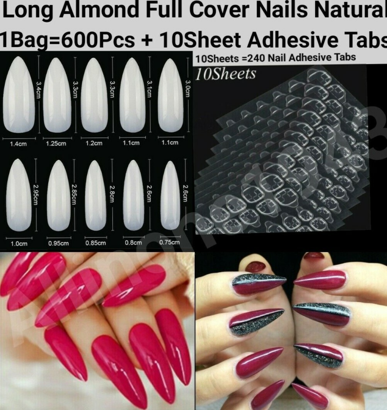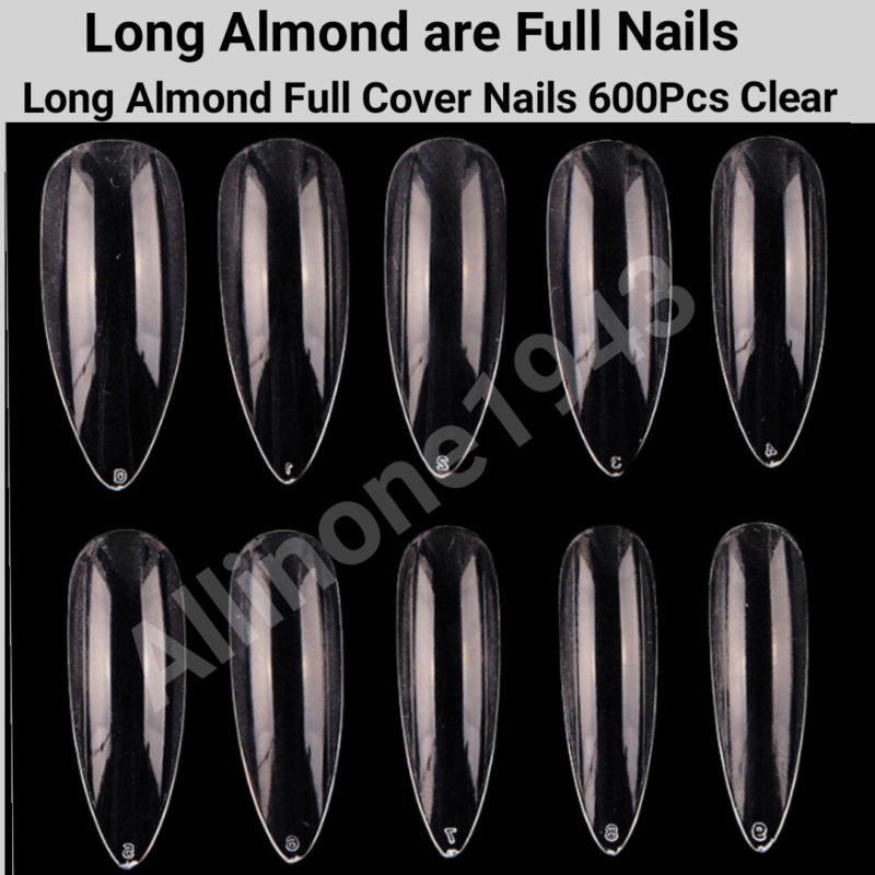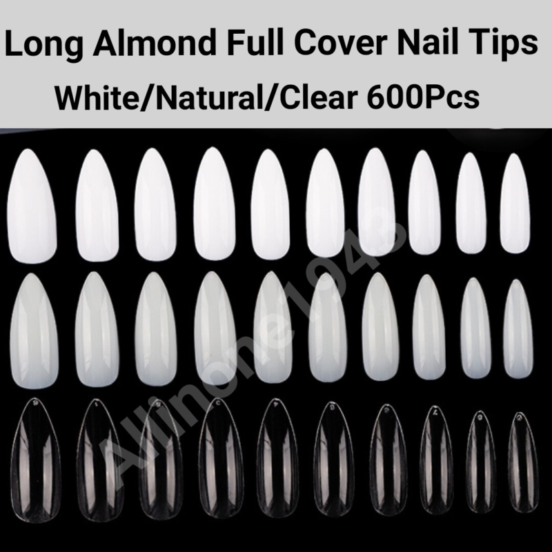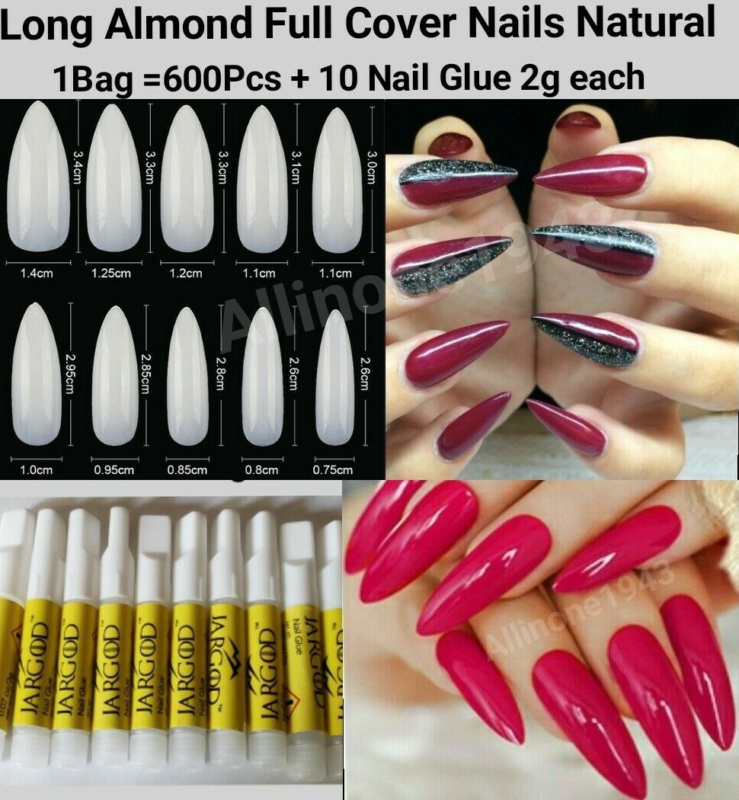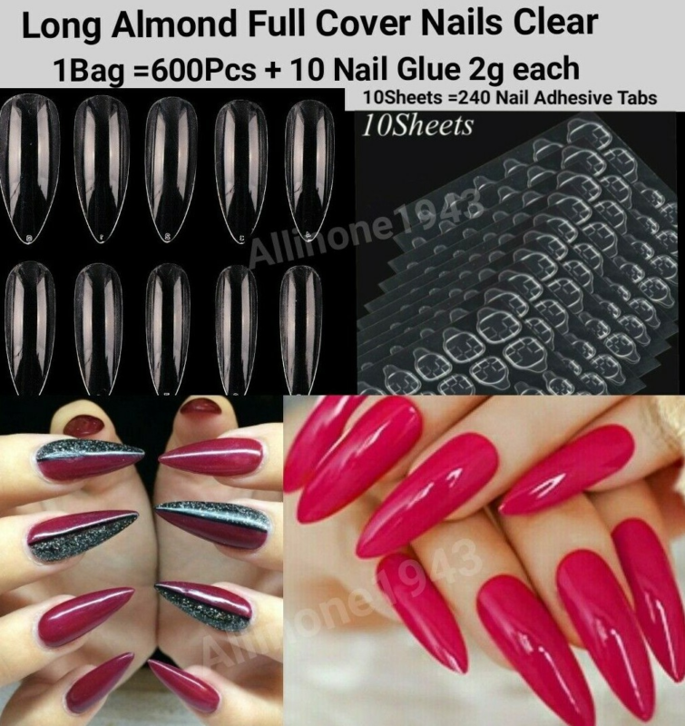 600Pc Long Almond Full Cover artificial Nails Tips Acrylic False Press on Nails