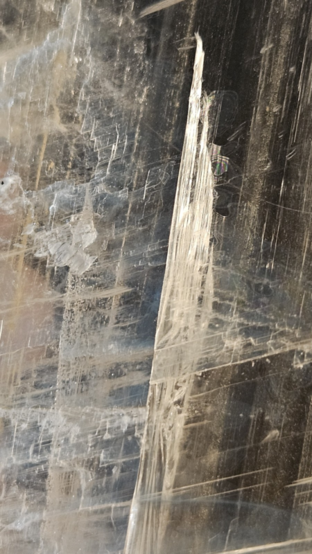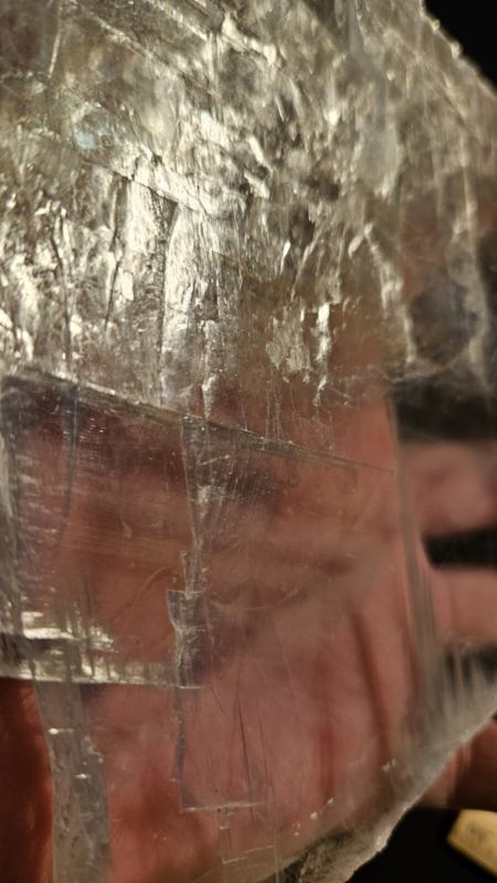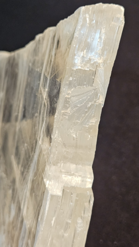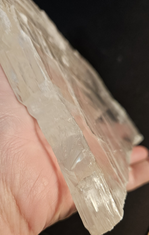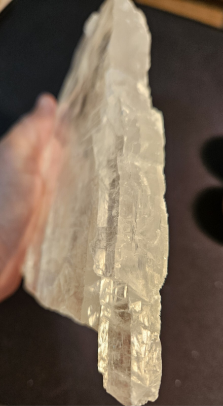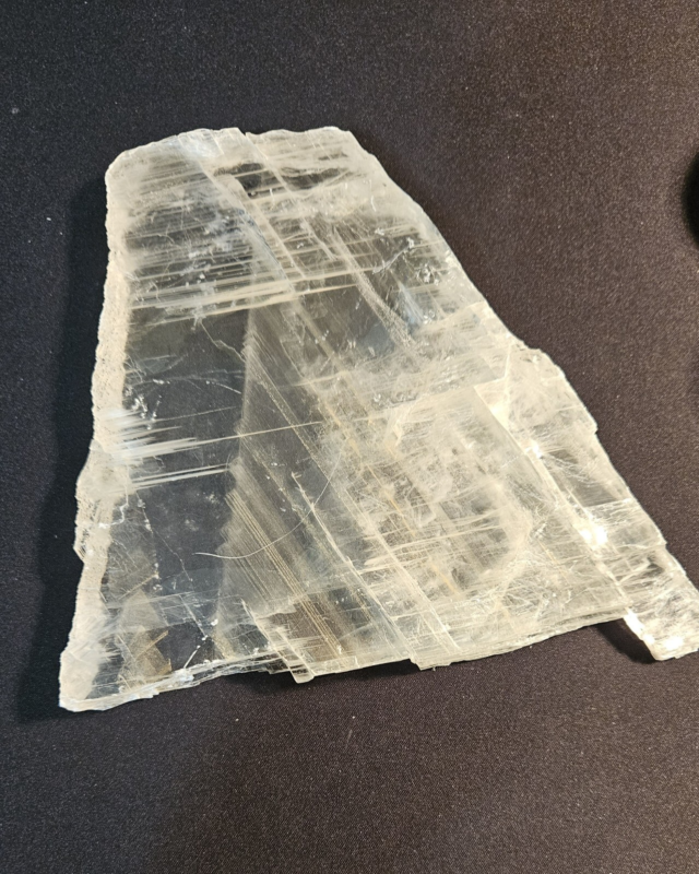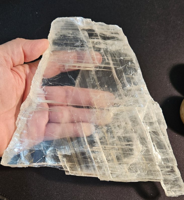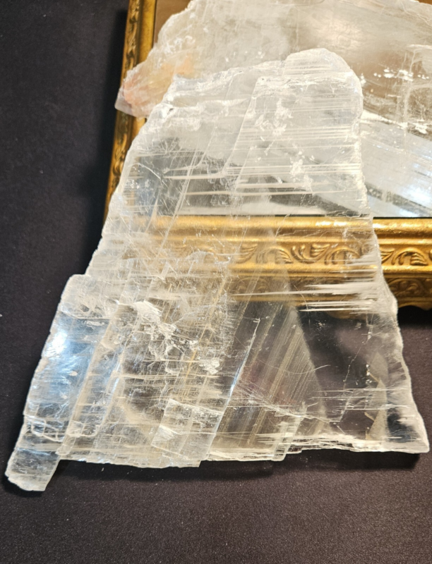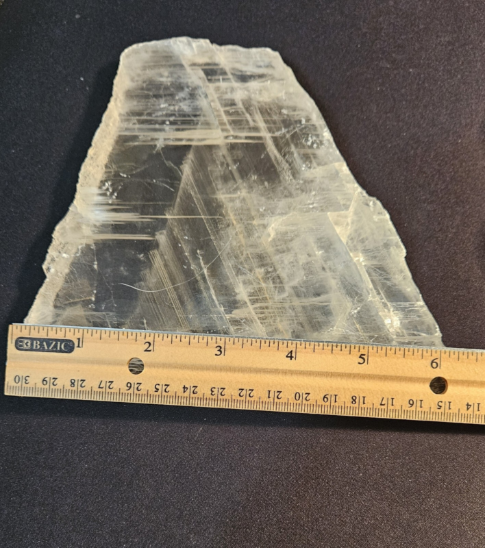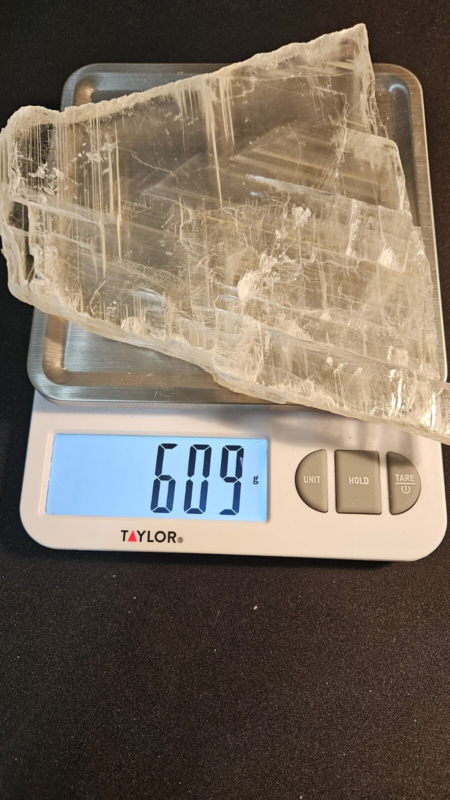 This beautiful mineral comes from Zacatecas, Mexico.  Weight is  609g and has multitudes of thin transparent layers formed over millions of years. This Selenite slab is considered a Phantom Selenite due to its limonite inclusions.
