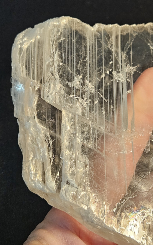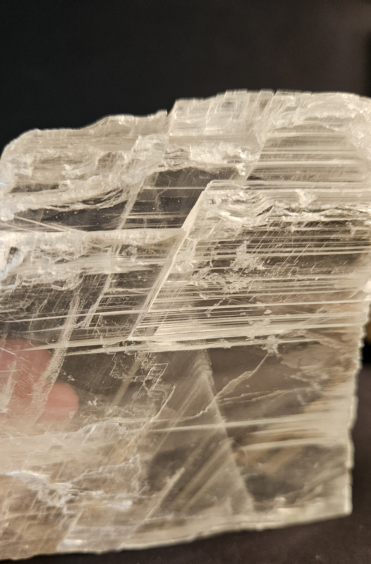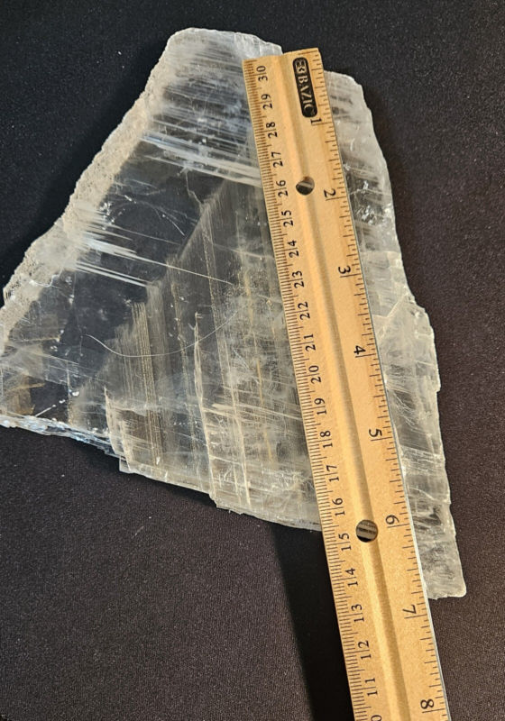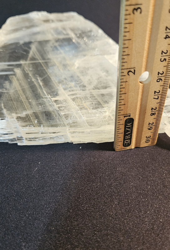 This beautiful mineral comes from Zacatecas, Mexico. Weight is 609g and has multitudes of thin transparent layers formed over millions of years. This Selenite slab is considered a Phantom Selenite due to its limonite inclusions.