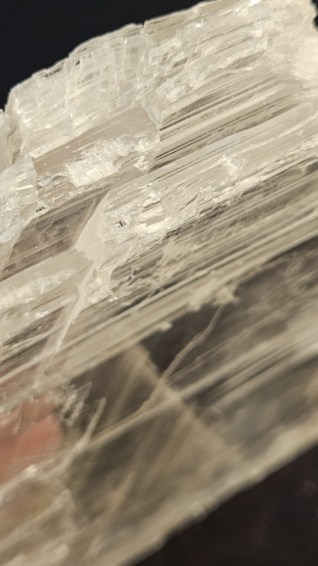 Selenite, a type of gypsum mineral, is formed when saltwater evaporates and leaves behind a layer of salt in a cool environment. Over millions of years, the water builds up, evaporates, and the gypsum starts to crystallize. As the crystals solidify, they can capture particles of sand and other minerals. Selenite crystals can be found in the sedimentary layer of regions that were once covered with saltwater.