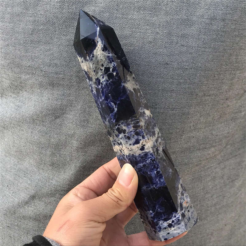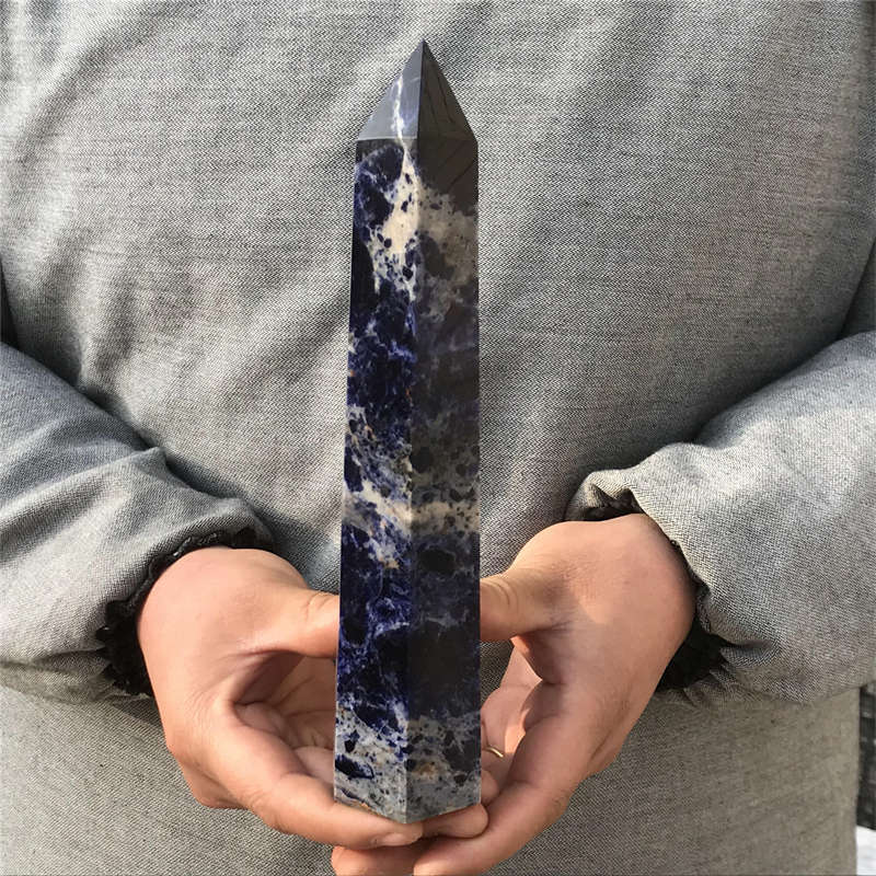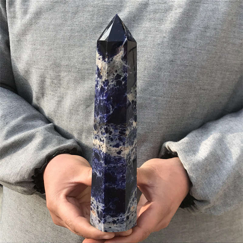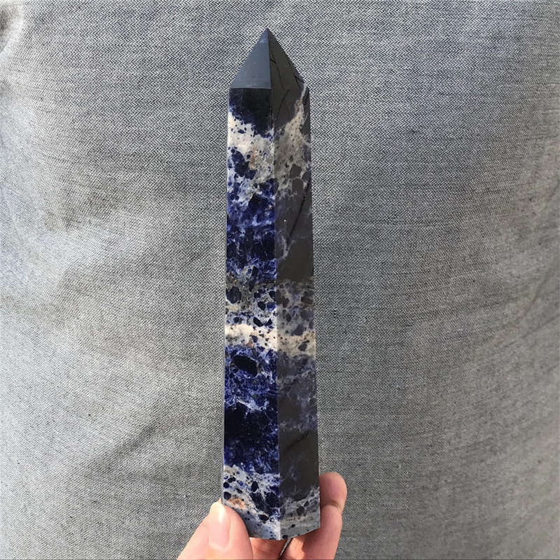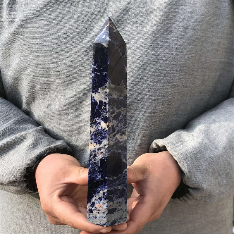 630g Natural Sodalite Obelisk Quartz Crystal Point Wand Tower Reiki Healing Gem
