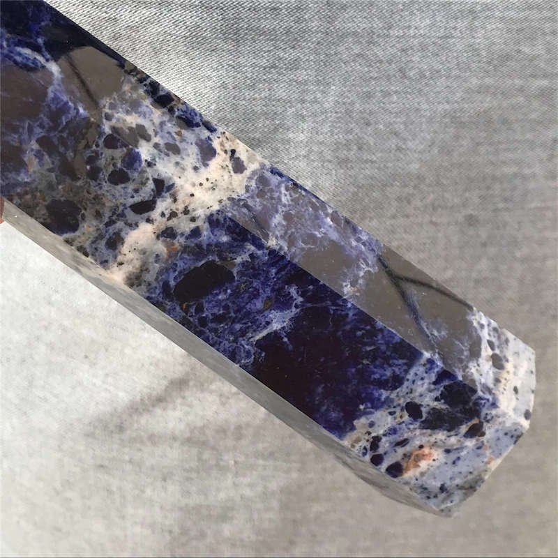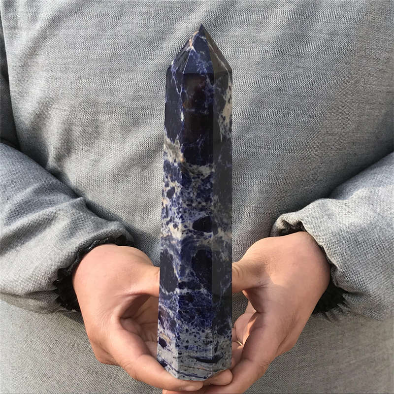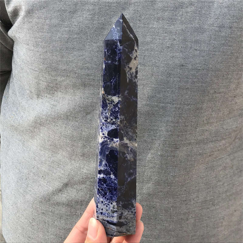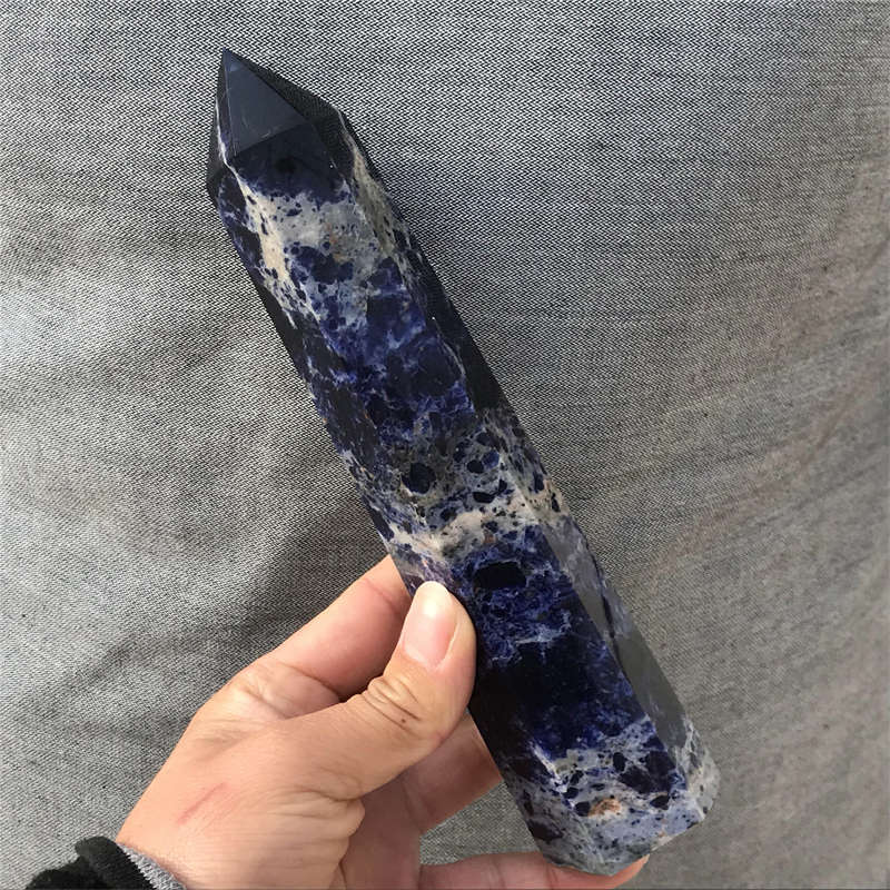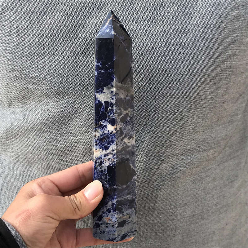 630g Natural Sodalite Obelisk Quartz Crystal Point Wand Tower Reiki Healing Gem