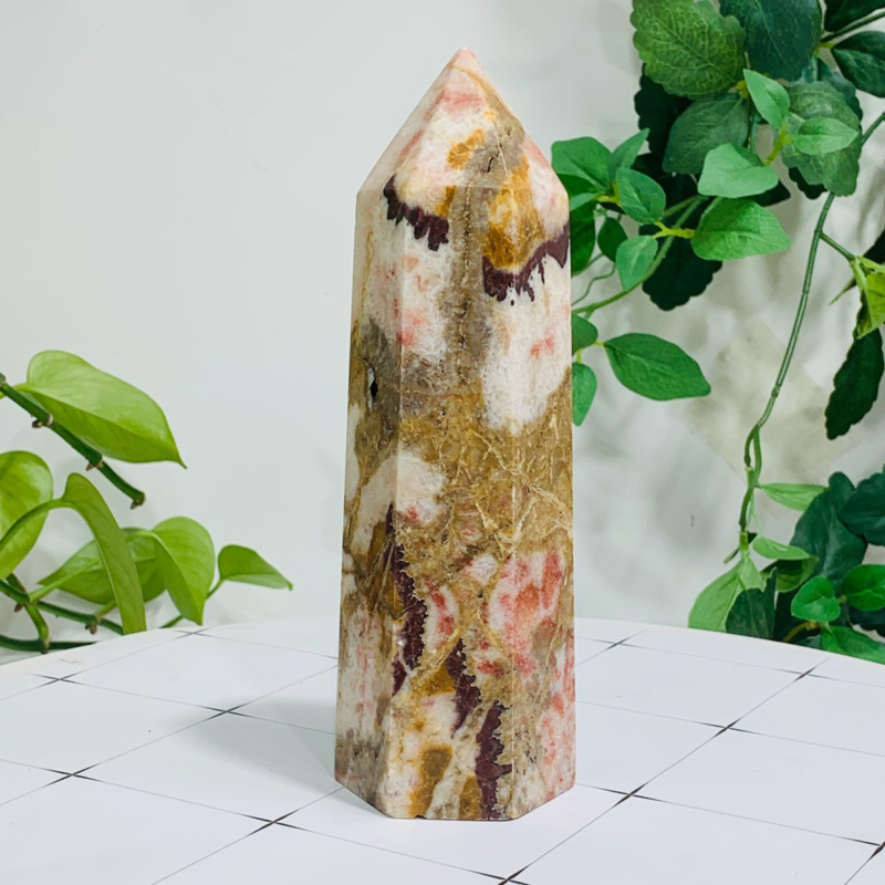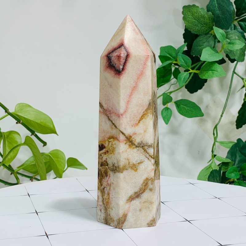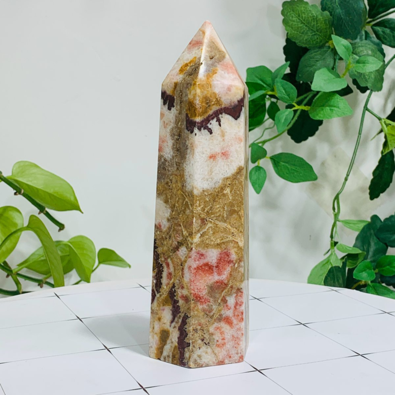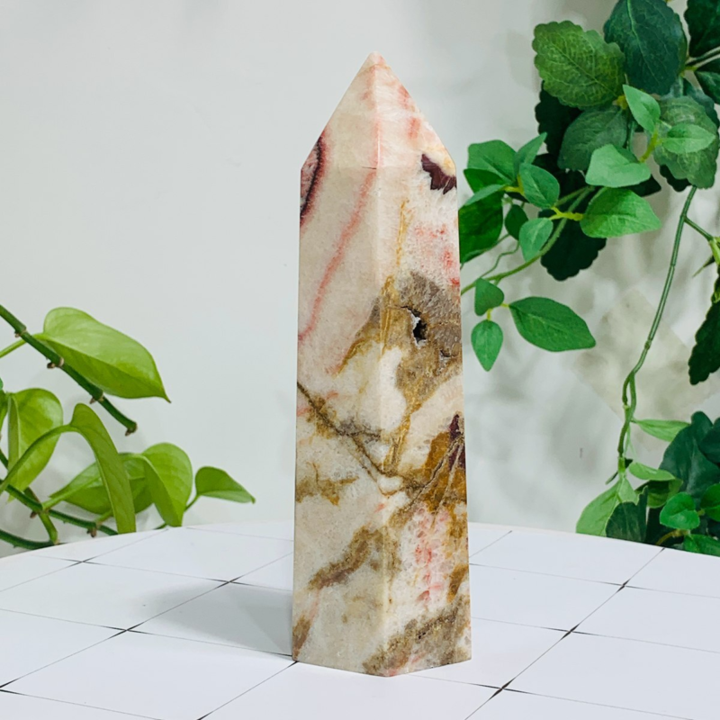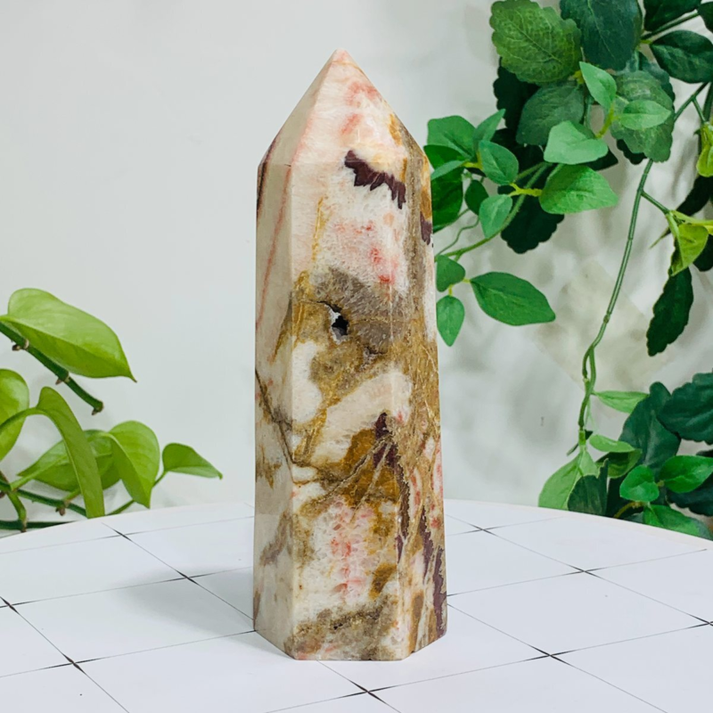 652g Natural Pork Stone Quartz Obelisk Crystal Wand Point Tower Reiki Healing