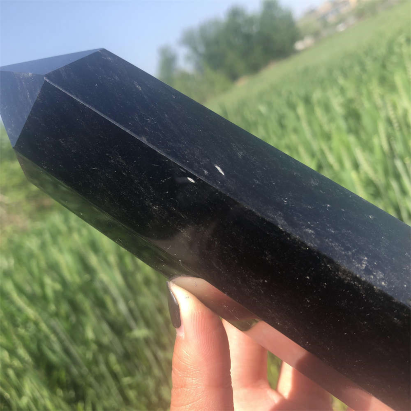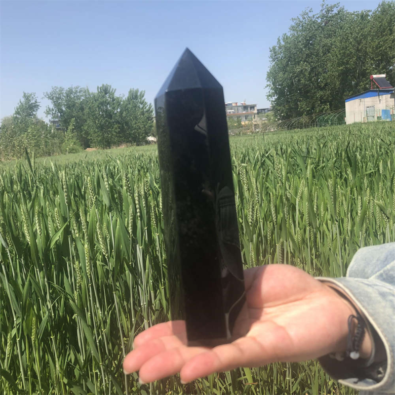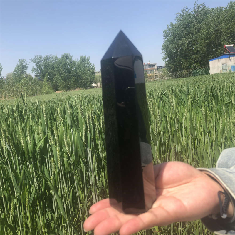 690g Natural Obsidian Obelisk Quartz Crystal Point Wand Tower Healing