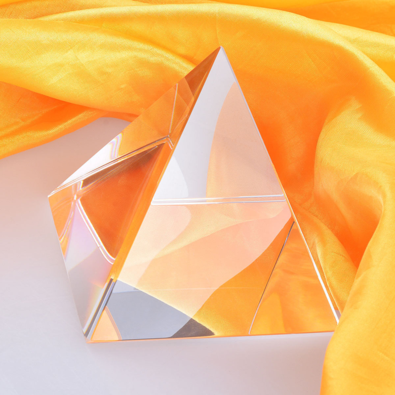 6cm" Tall 3 Arris Crsytal Pyramid Paperweight Tetrahedron Prisms