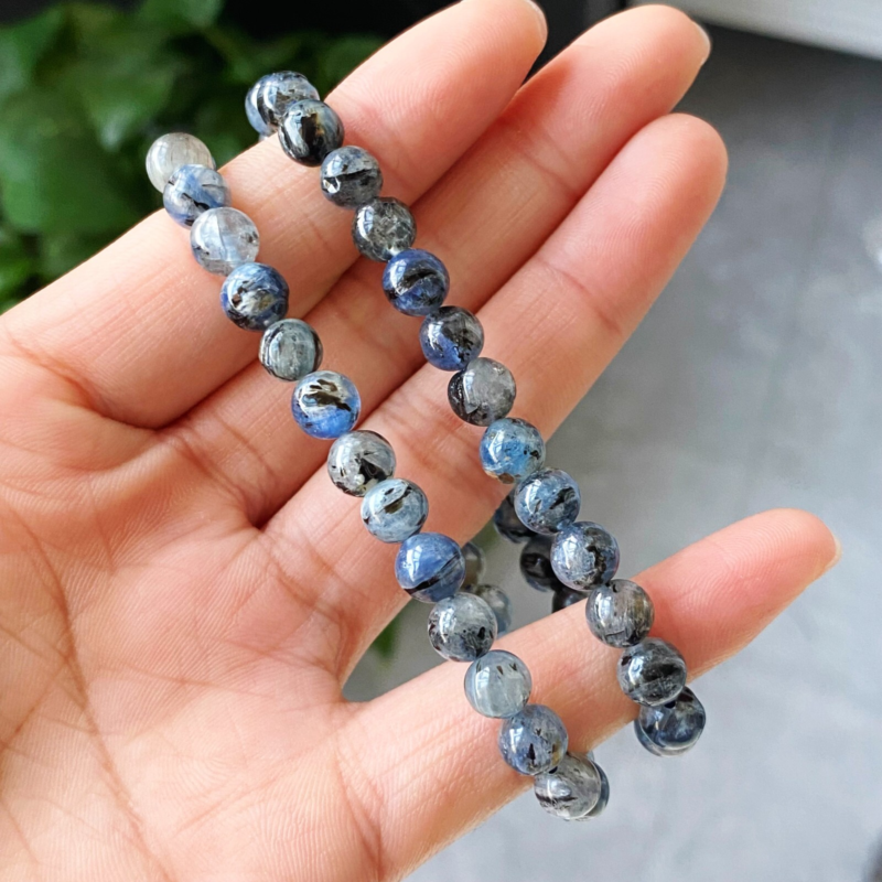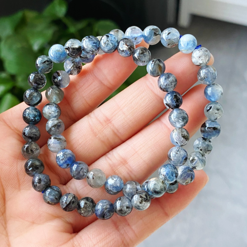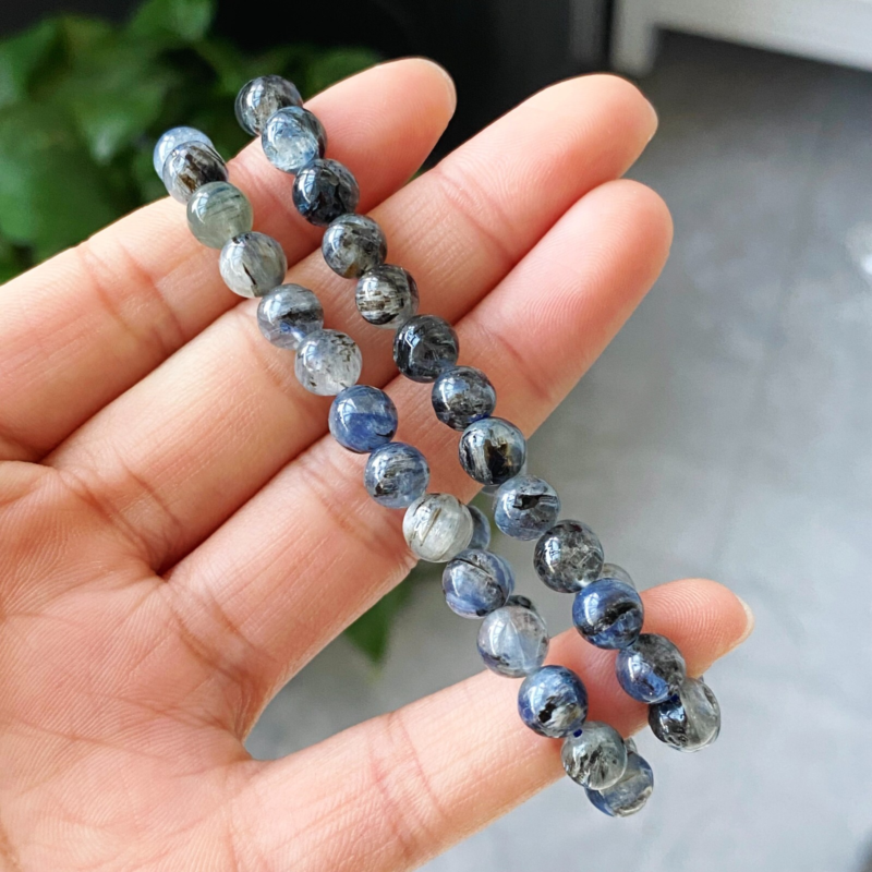 6mm 2pcs Natural Blue Kyanite Cat Eye Crystal Stretch Beads Bracelet AAA