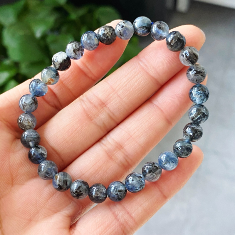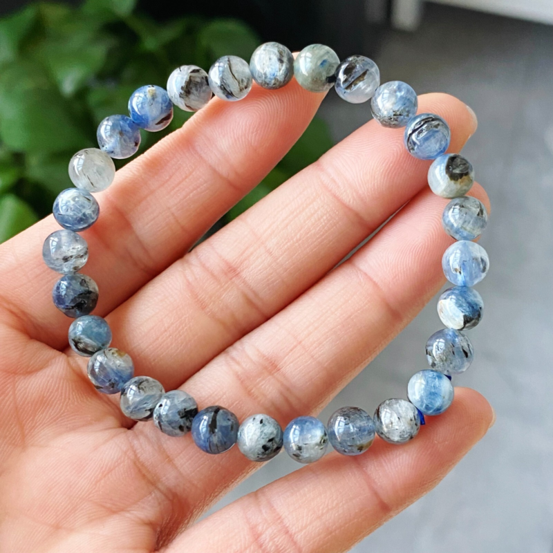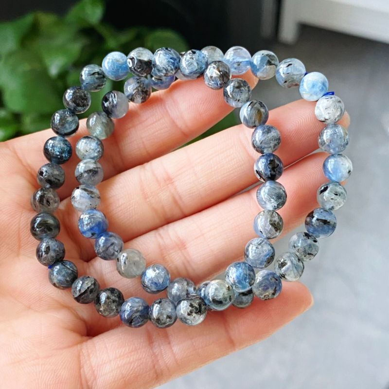 6mm 2pcs Natural Blue Kyanite Cat Eye Crystal Stretch Beads Bracelet AAA