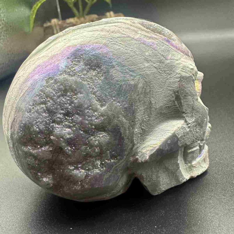 705g electroplate Natural sphalerite hand carved skull decor gem Healing