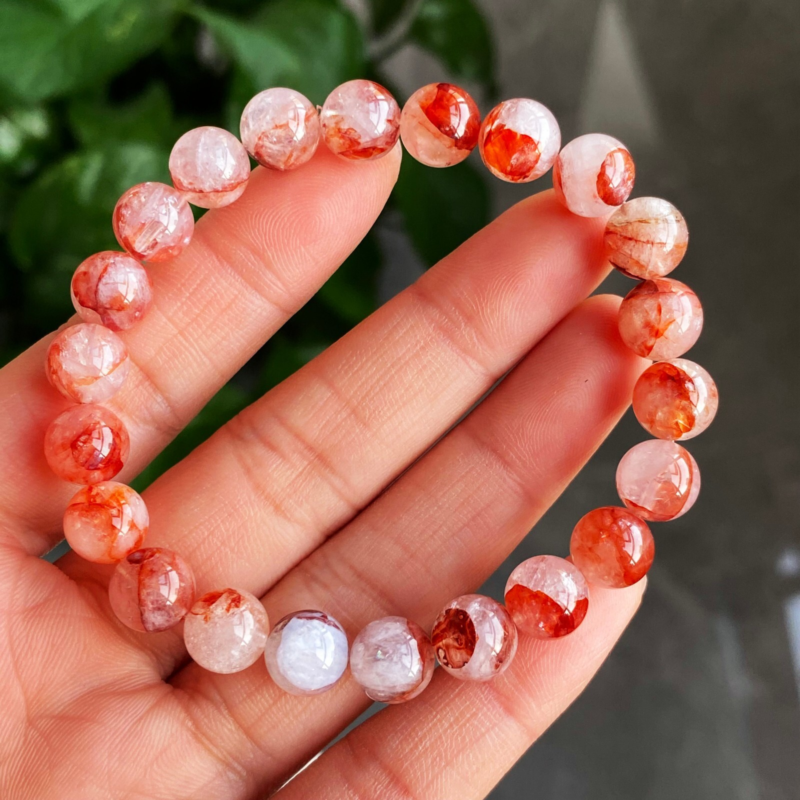 8.5mm 2pcs Natural Red Gelatinous Phantom Quartz Stretch Crystal Bracelet