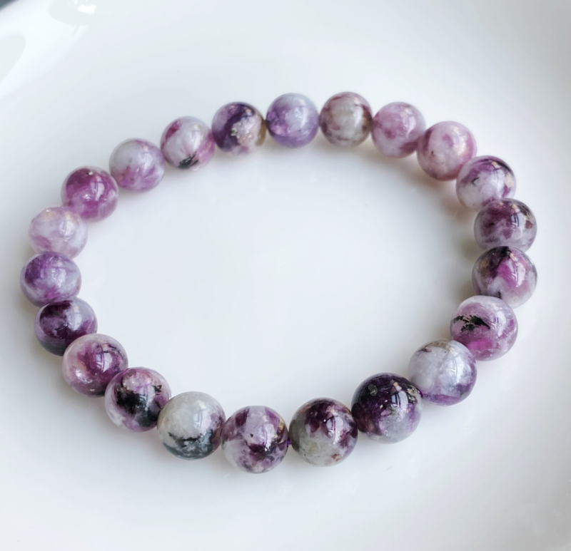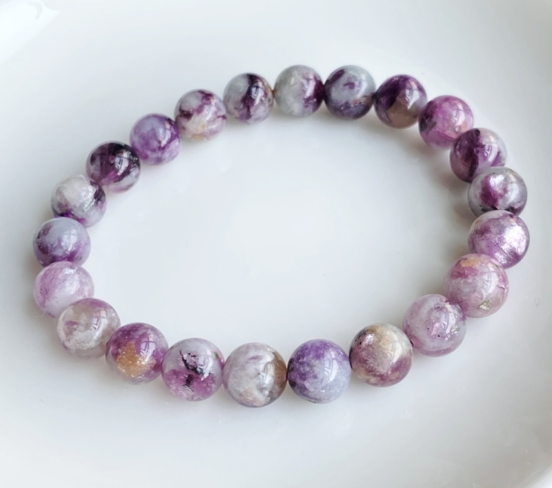 8.5mm Natural PurplelepidoliteQuartz Crystal Water Sticky Beads Bracelet