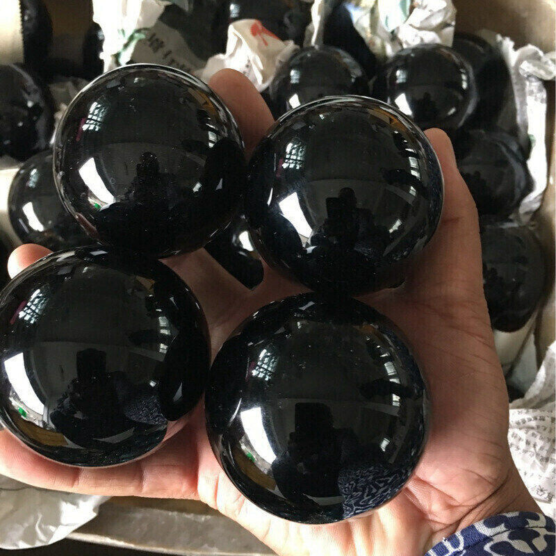 80MM Large Natural Black Obsidian Crystal Sphere Ball Healing Rock Stone DECOR