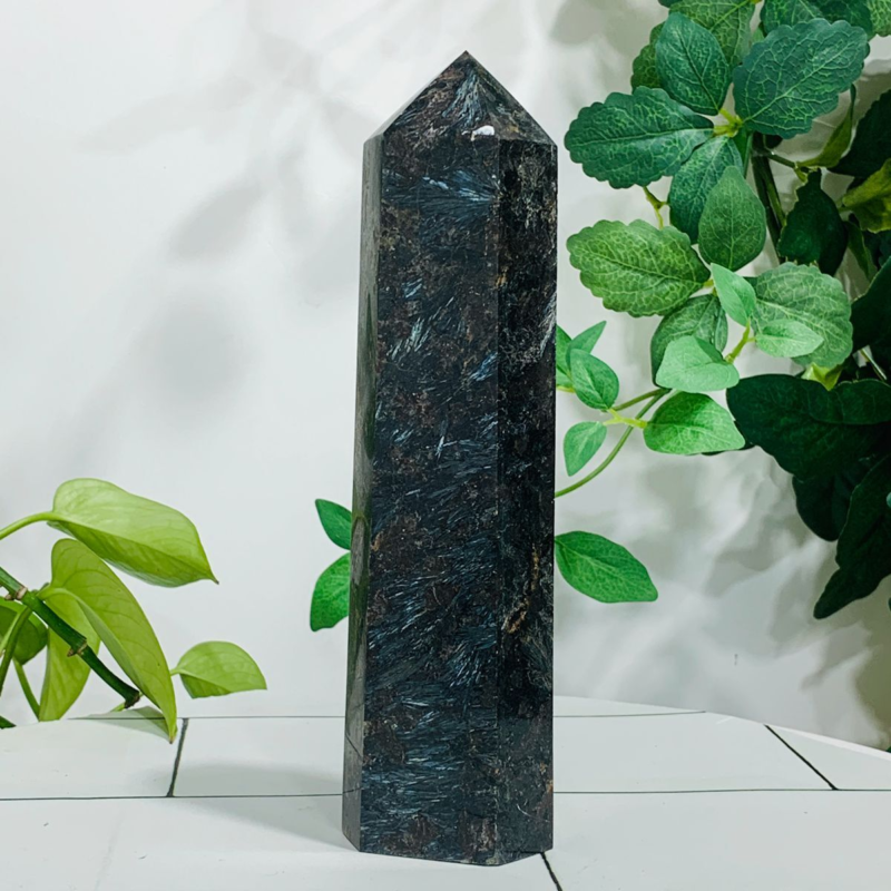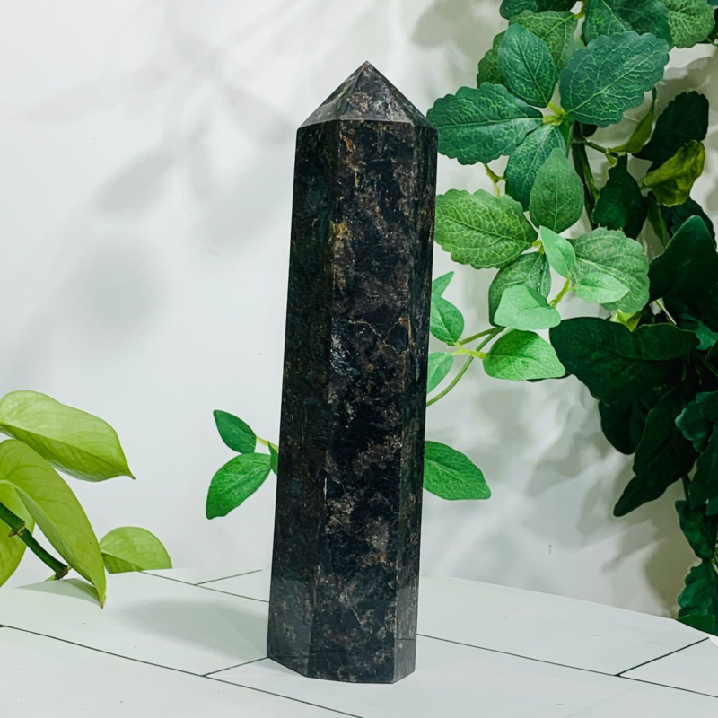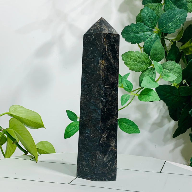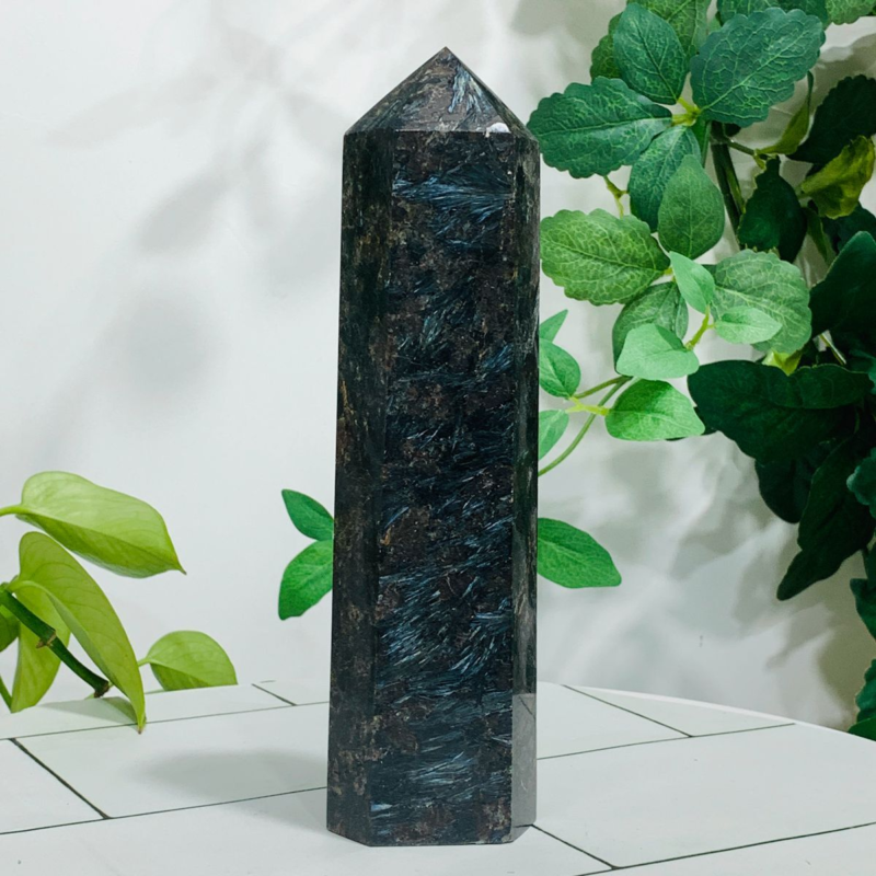 815g Natural Firework Stone Quartz Obelisk Crystal Wand Point Tower Healing