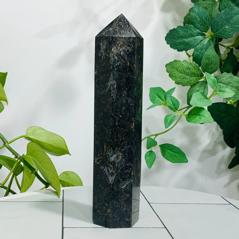 815g Natural Firework Stone Quartz Obelisk Crystal Wand Point Tower Healing