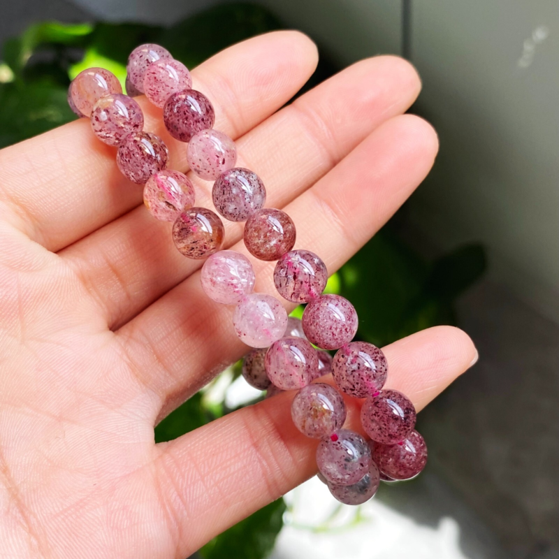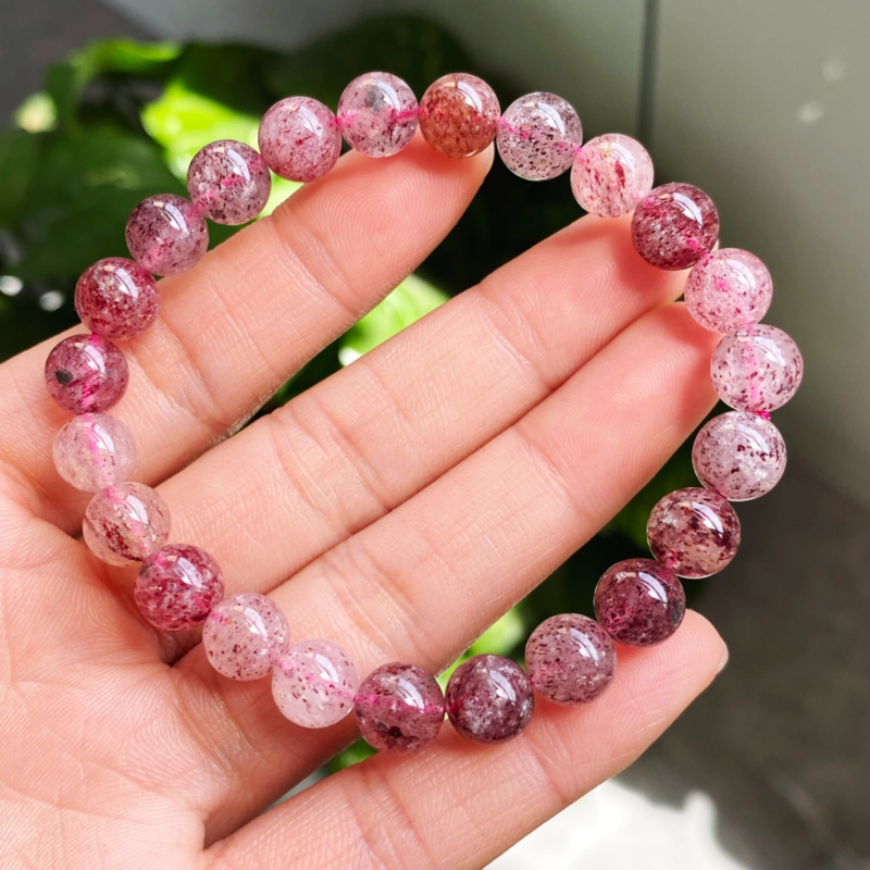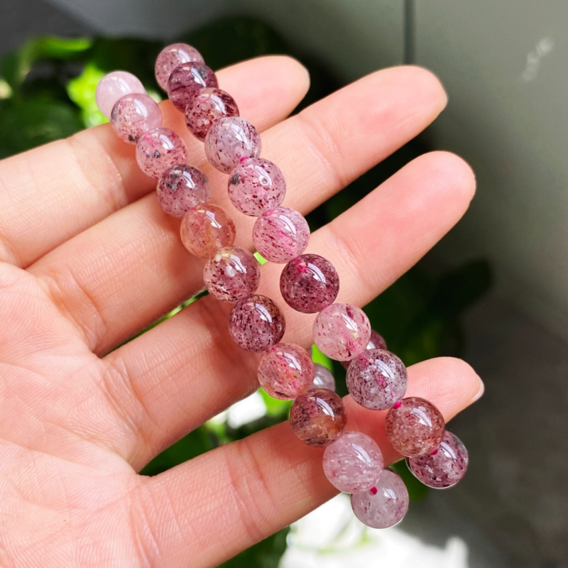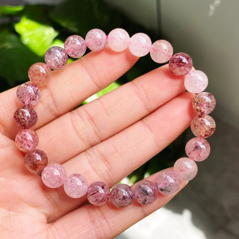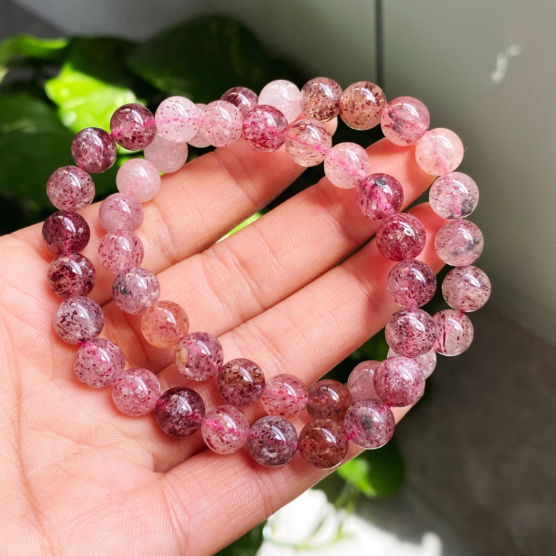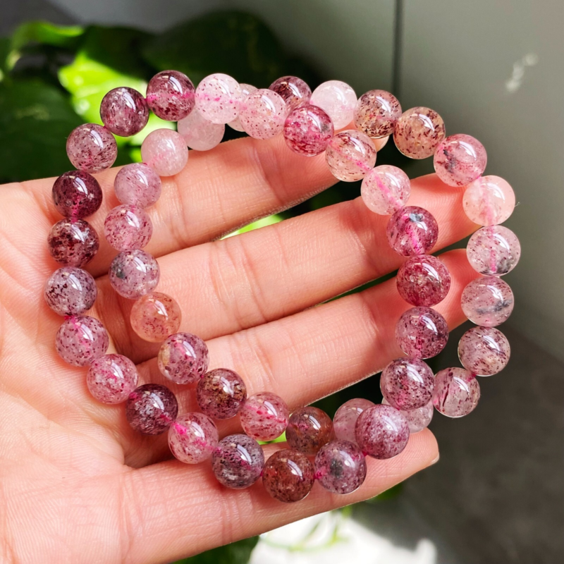 8mm 2Pcs Natural Brazil Super Seven 7 Strawberry Crystal Beads Bracelet