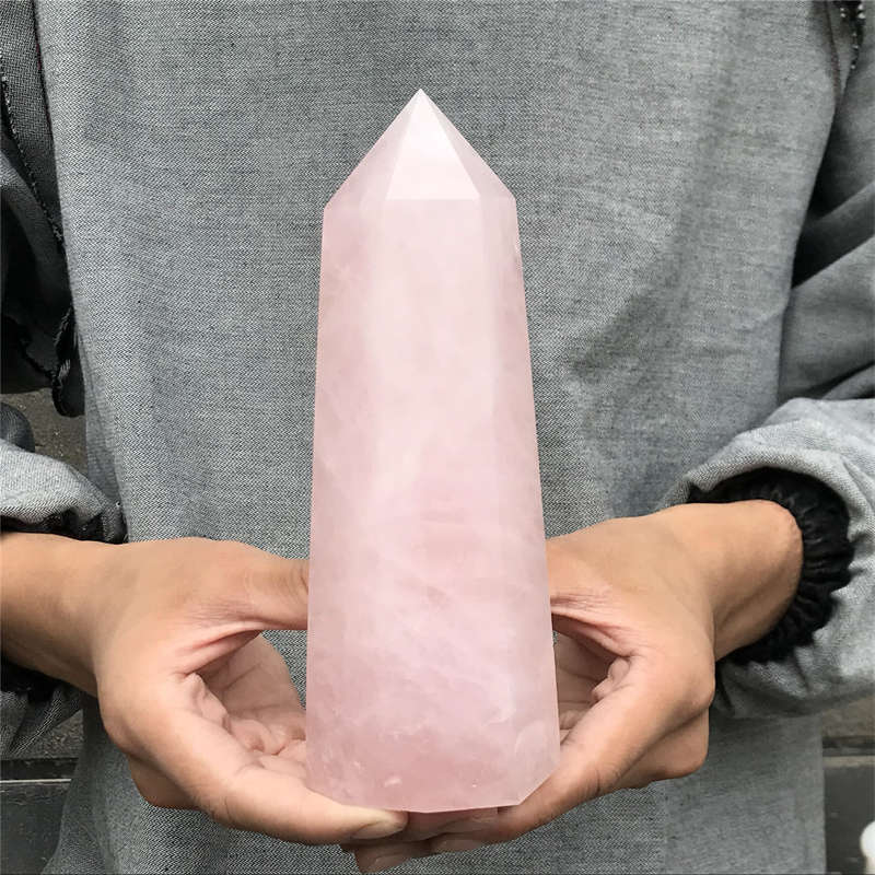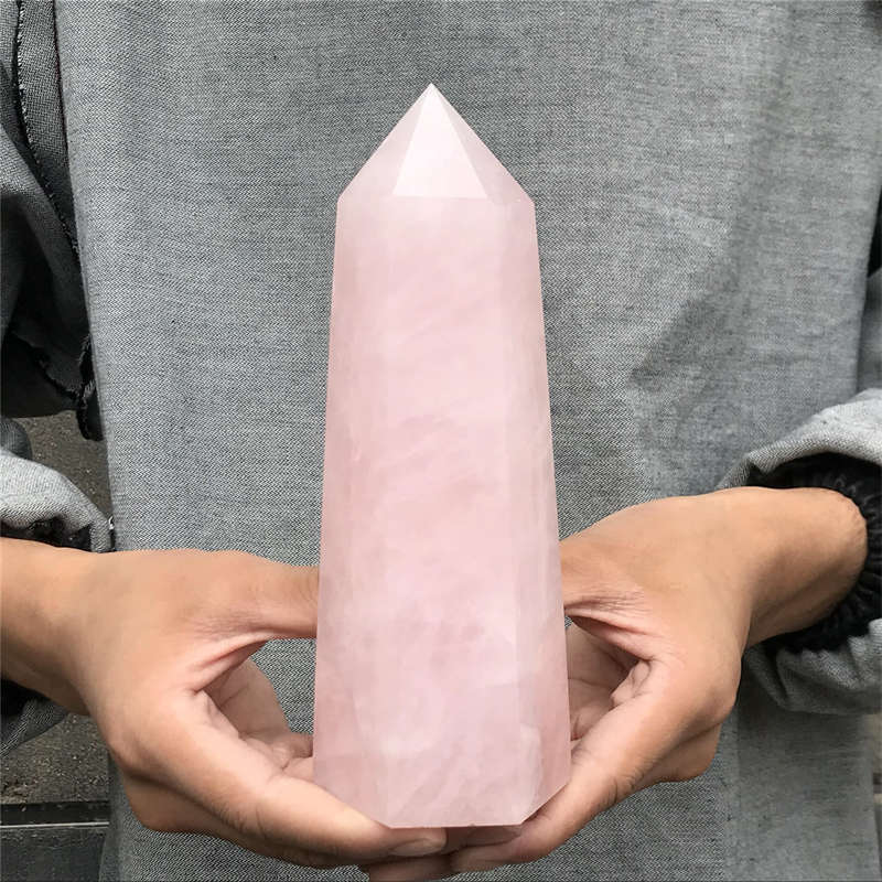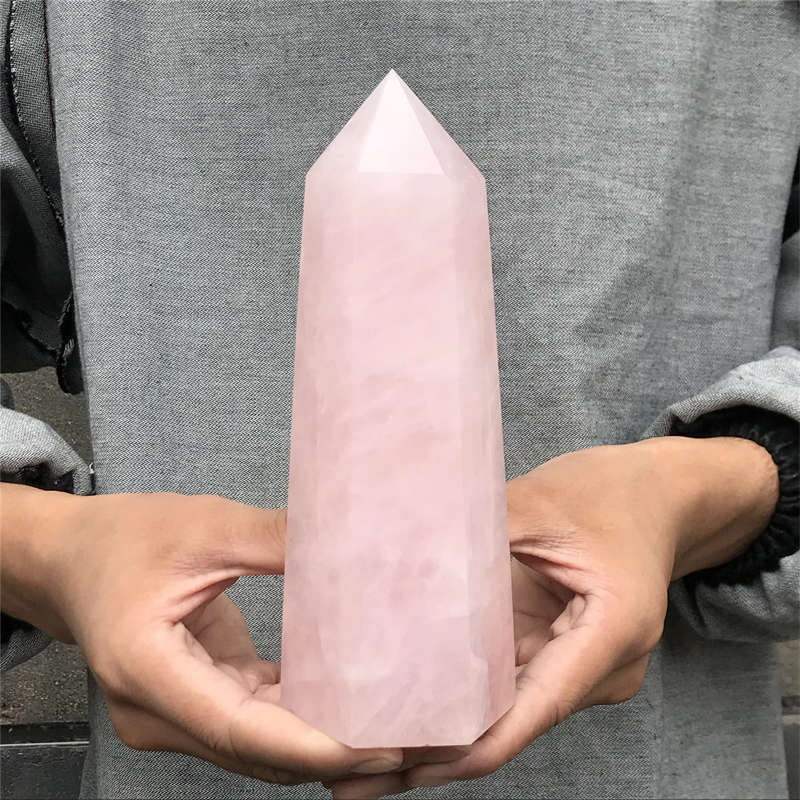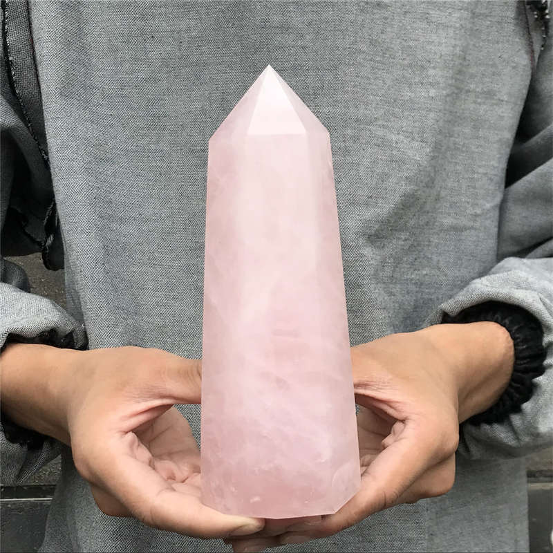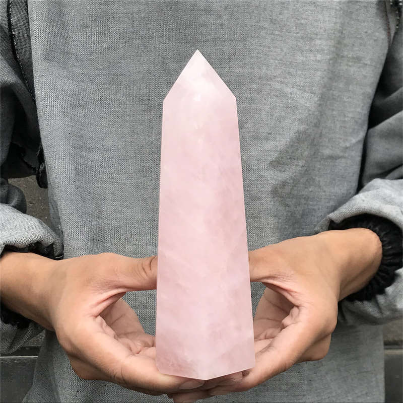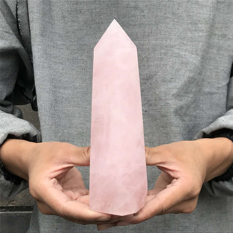 950g Natural Rose Quartz Obelisk Quartz Crystal Point Wand Healing Gem