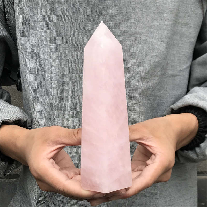 950g Natural Rose Quartz Obelisk Quartz Crystal Point Wand Healing Gem