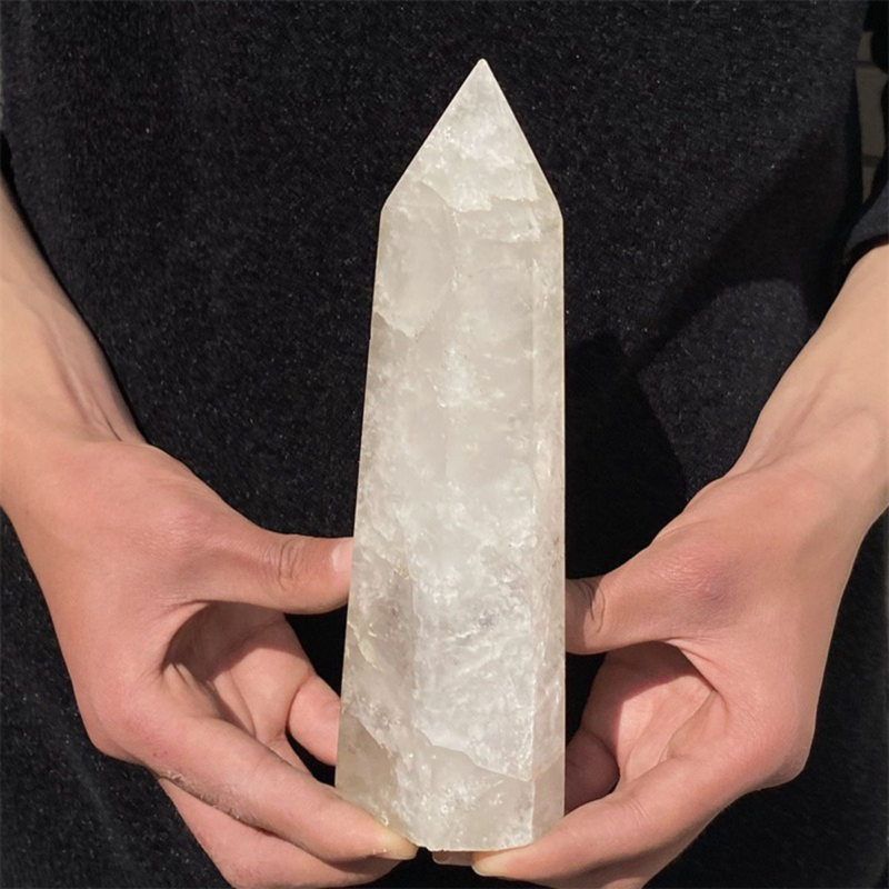950gNatural White Quartz Obelisk Crystal Wand Point Healing Mineral Stone