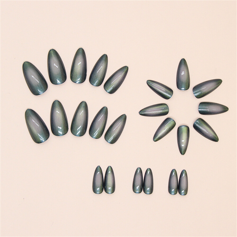 Almond Short False Nail Laser Mirror Glossy Press on Nails for Nail Art 24pcs