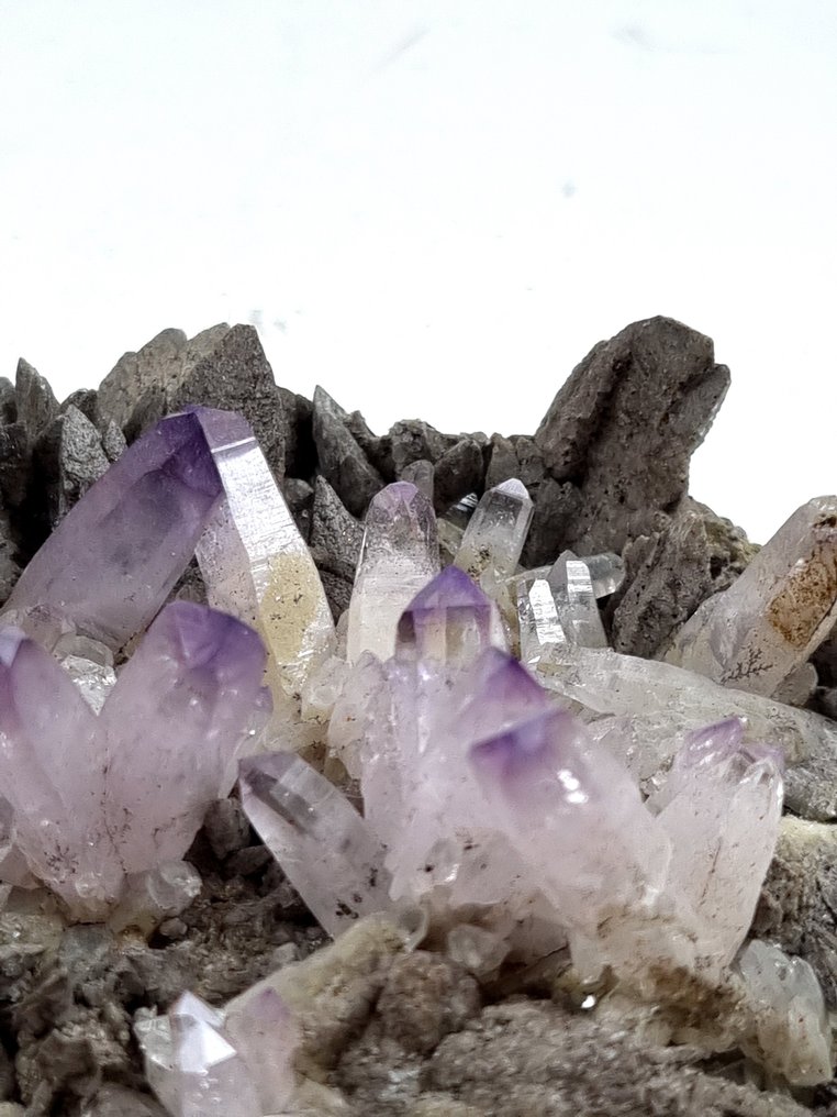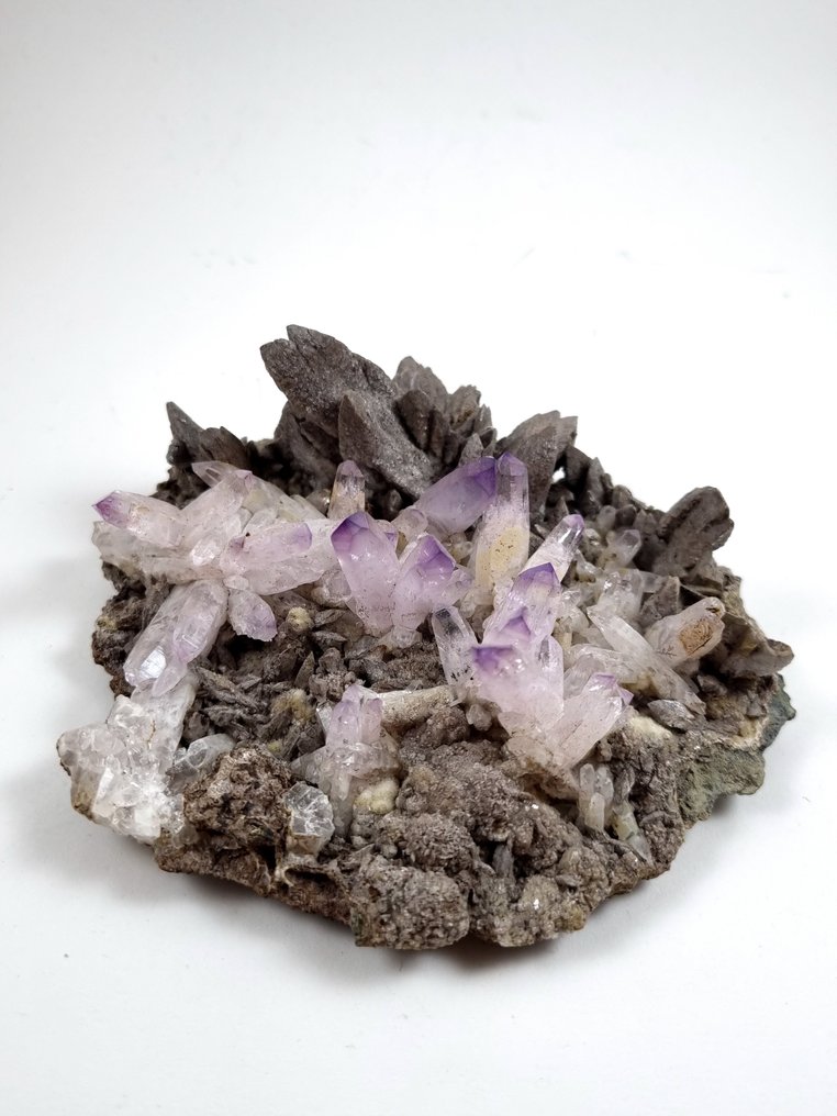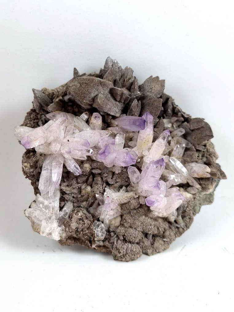 Amethyst and Calcite Vera Cruz Crystals on matrix - Height: 4 cm - Width: 9.5 cm- 140 g