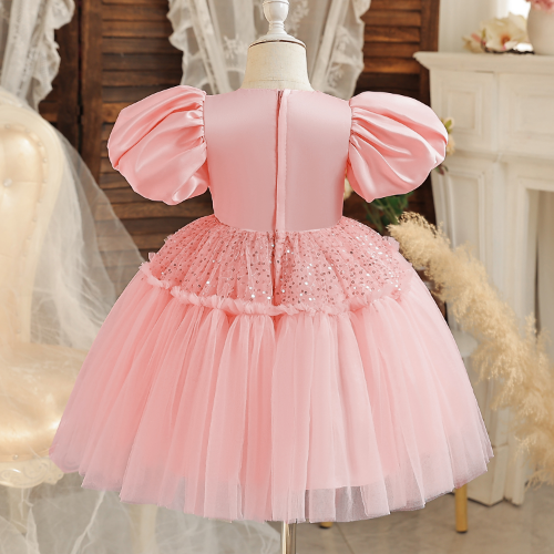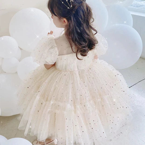 Baby Champagne Baptism Dress Cute Girl Sequin Puff Sleeve Fairy 1 Year Birthday