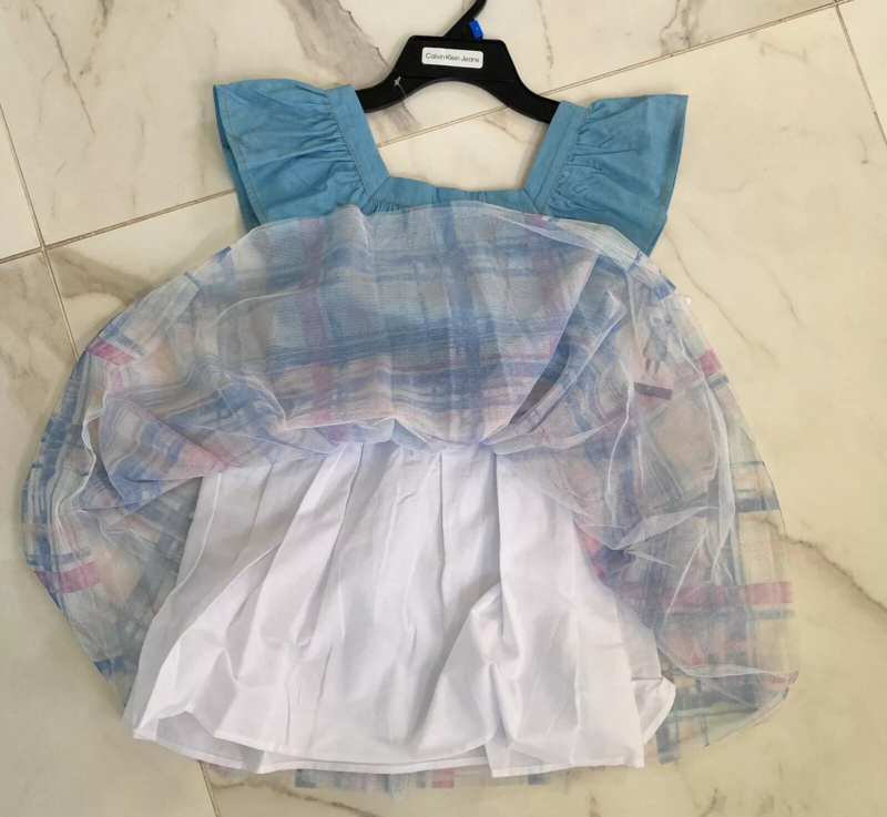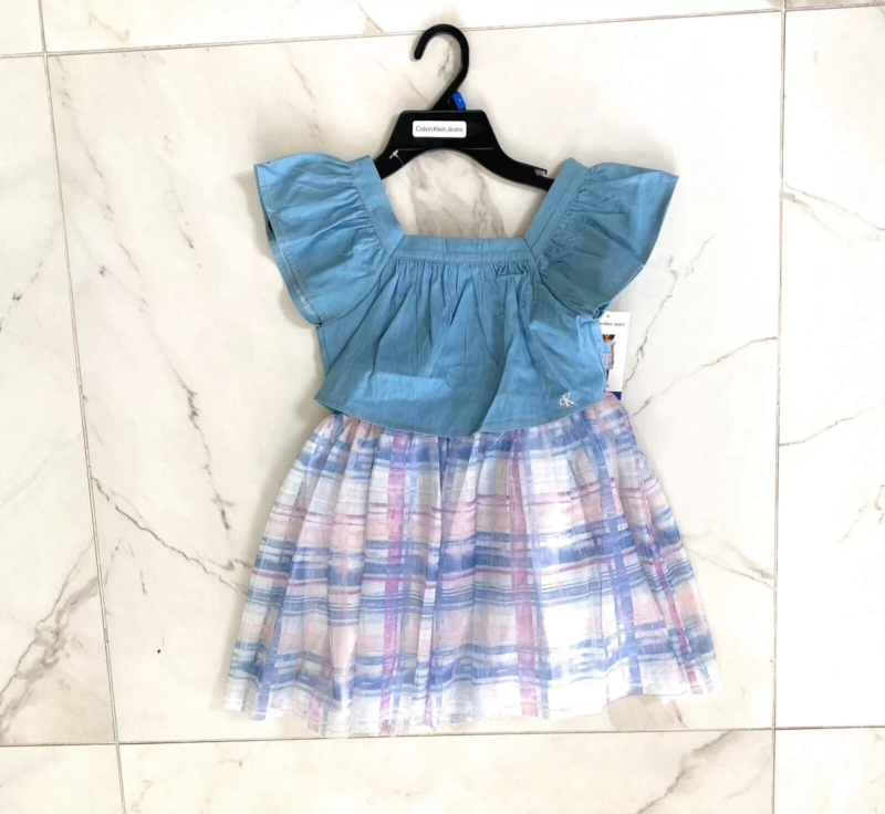 Calvin Klein Little Girls Dress Woven & Chiffon Size 7