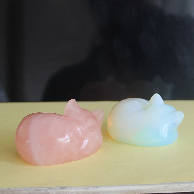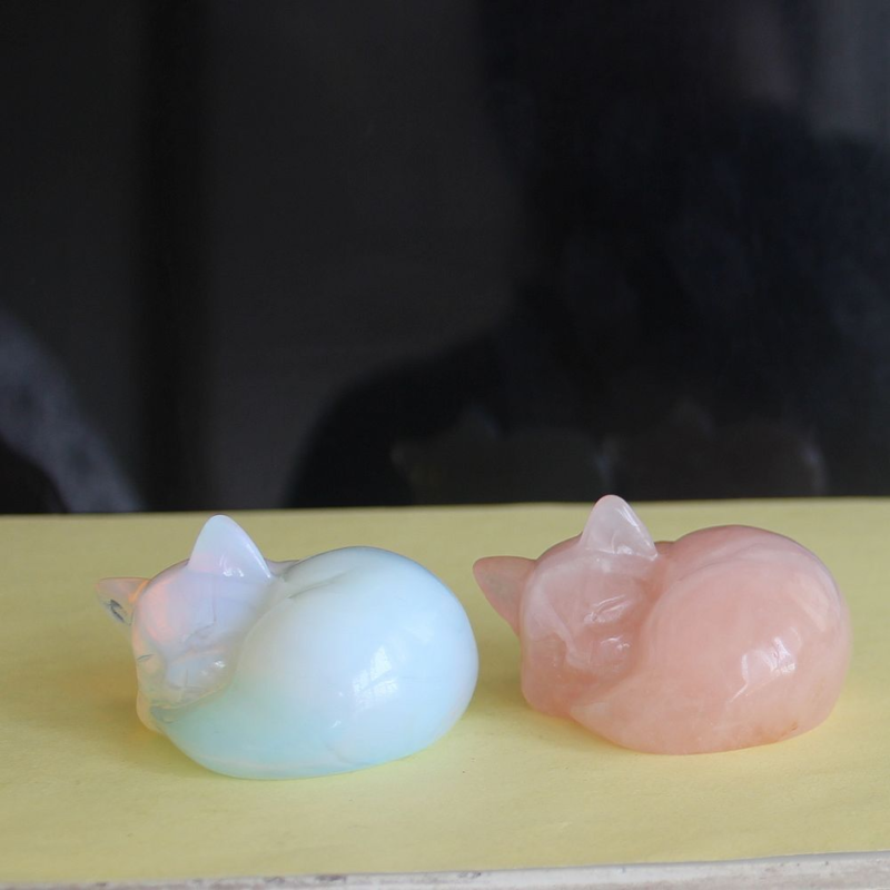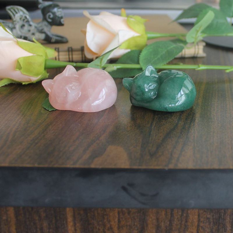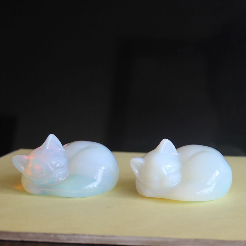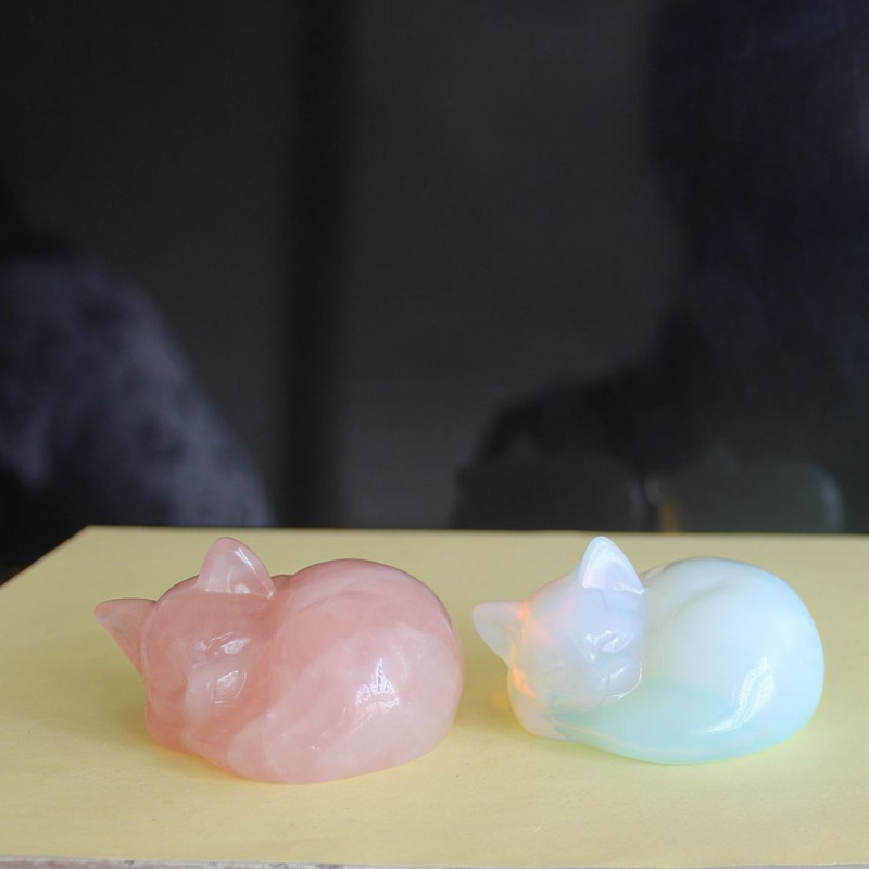 Carved crystal gemstone crystal sleeping cat figurine animal statue decor 2''