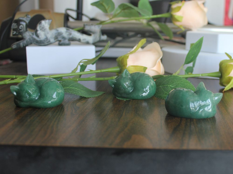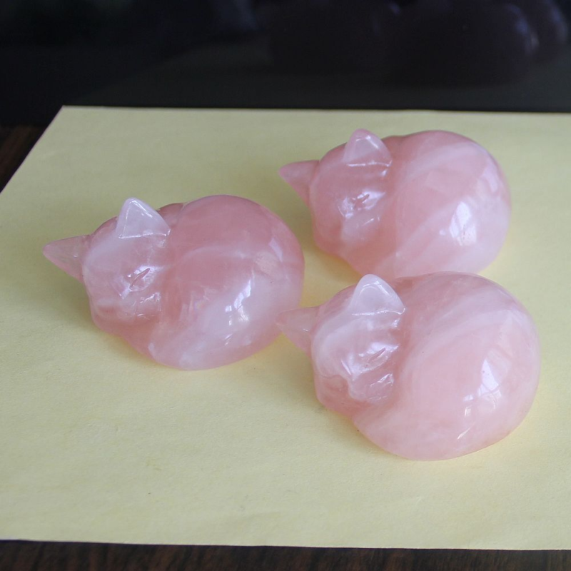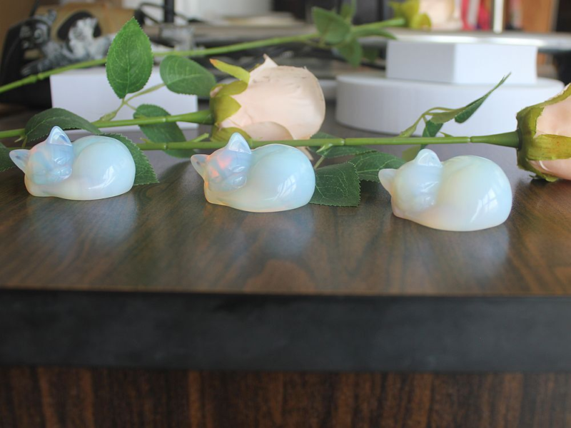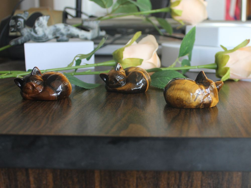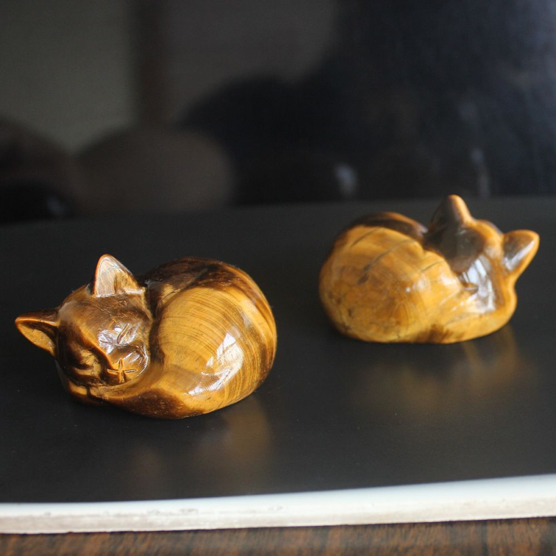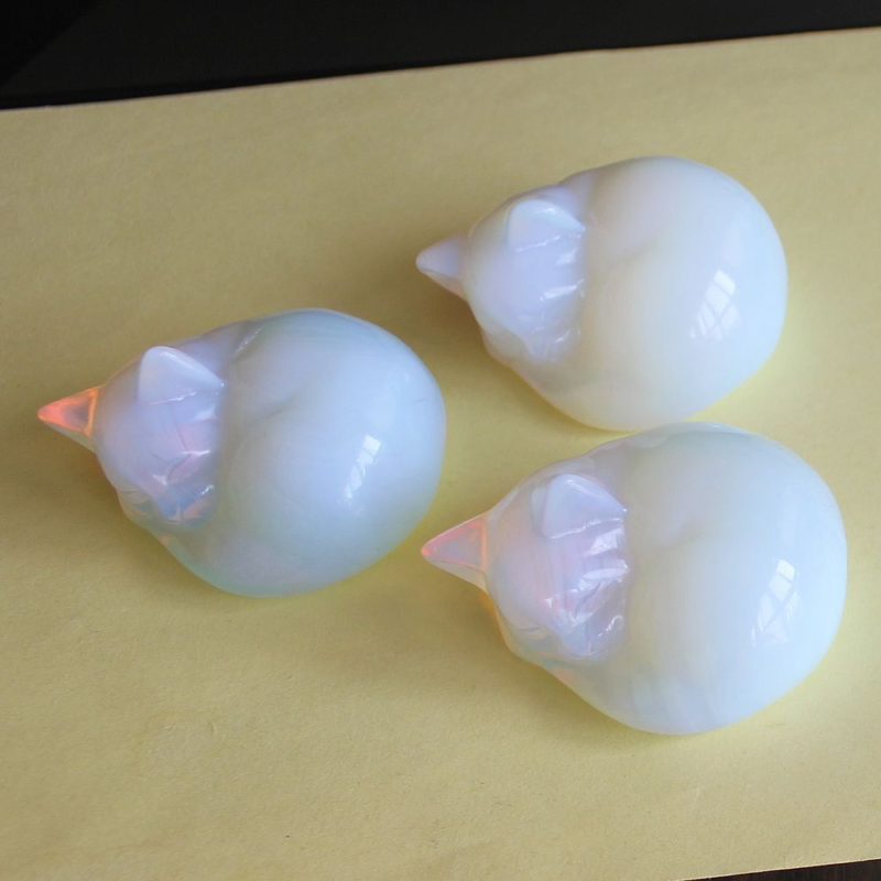 Carved crystal gemstone crystal sleeping cat figurine animal statue decor 2''