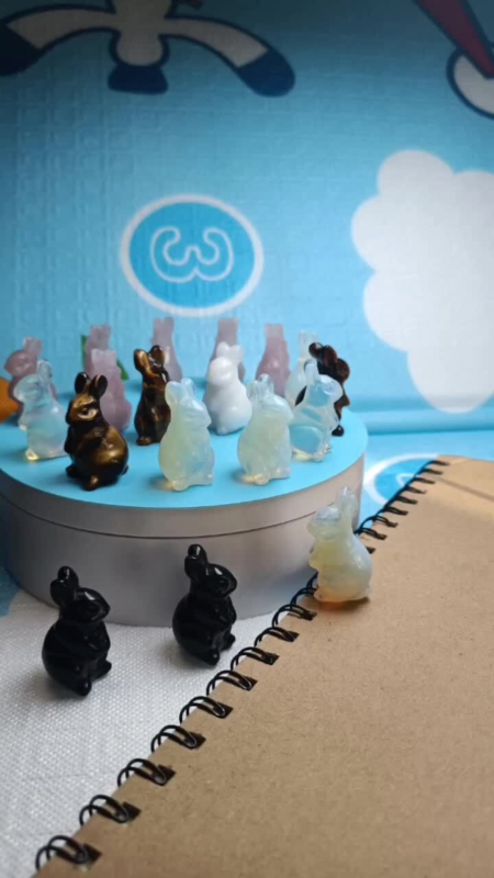 Carved gemstone crystal rabbit bunny figurine animal carving home decor 1.5''
