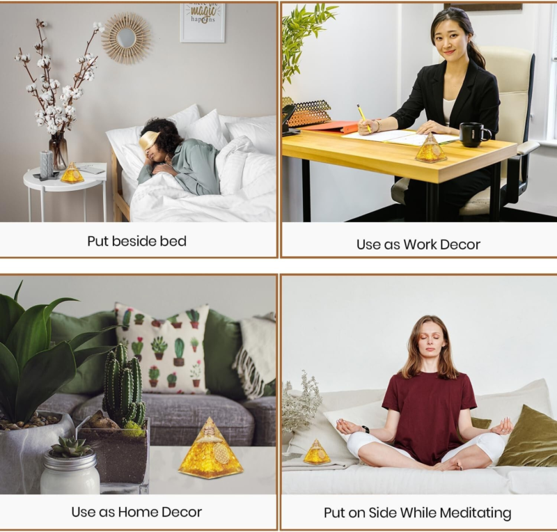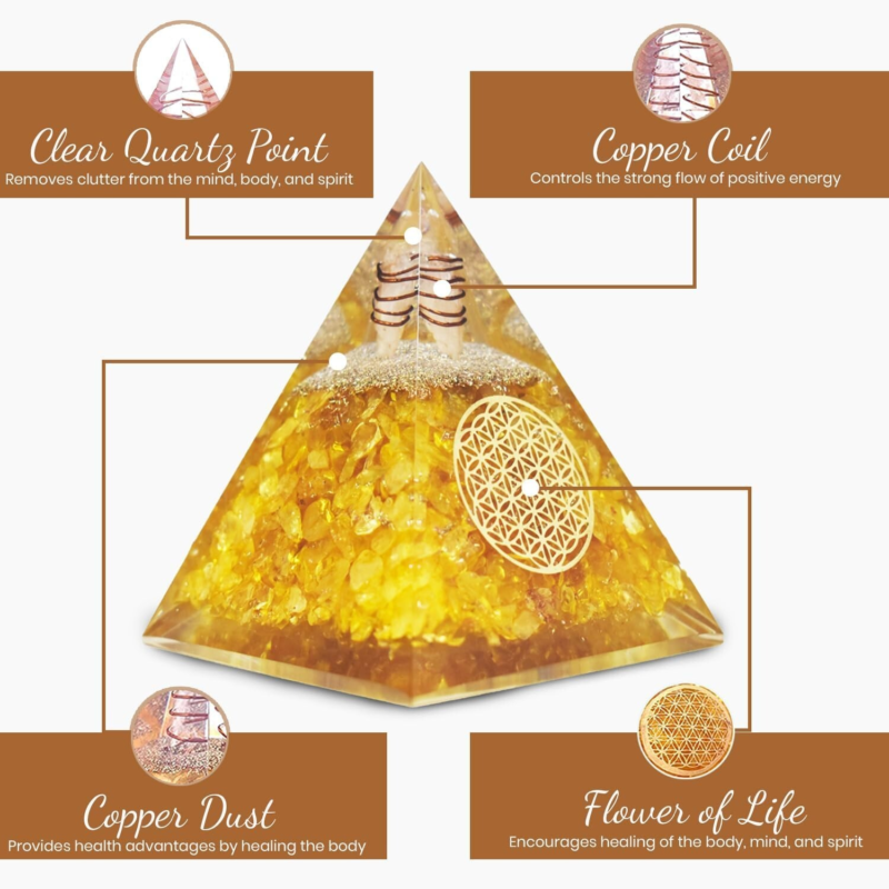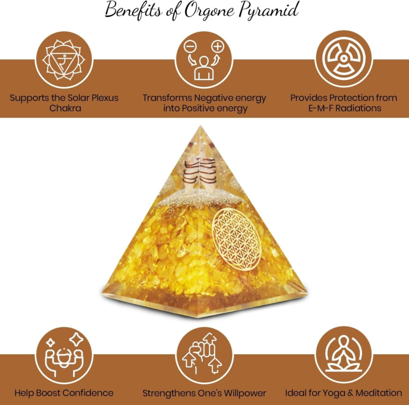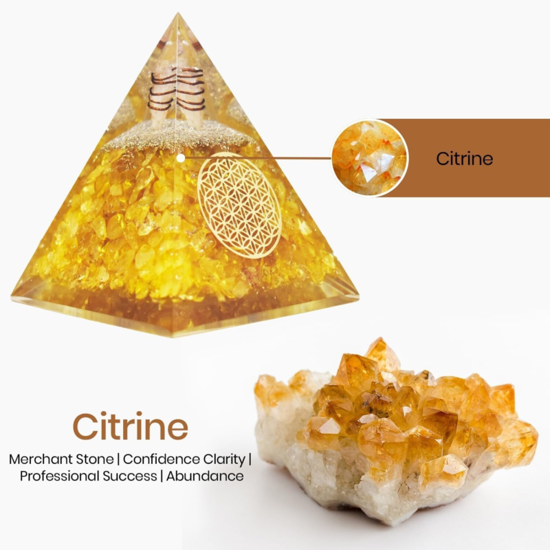 Citrine Orgonite Pyramid EMF Orgone Healing Crystal Meditation Positivity India