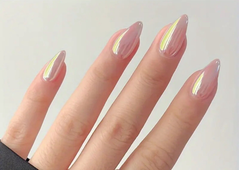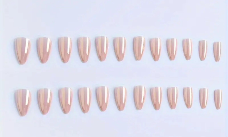 Classy press on nails short - Wedding Nails - Nude Chrome - 24ct - Reusable