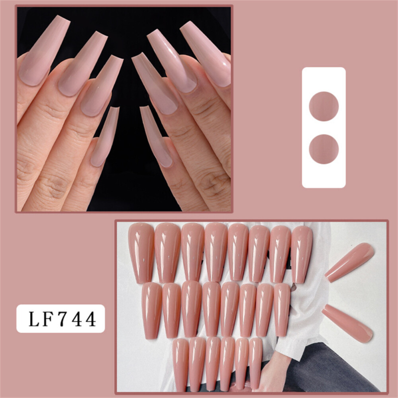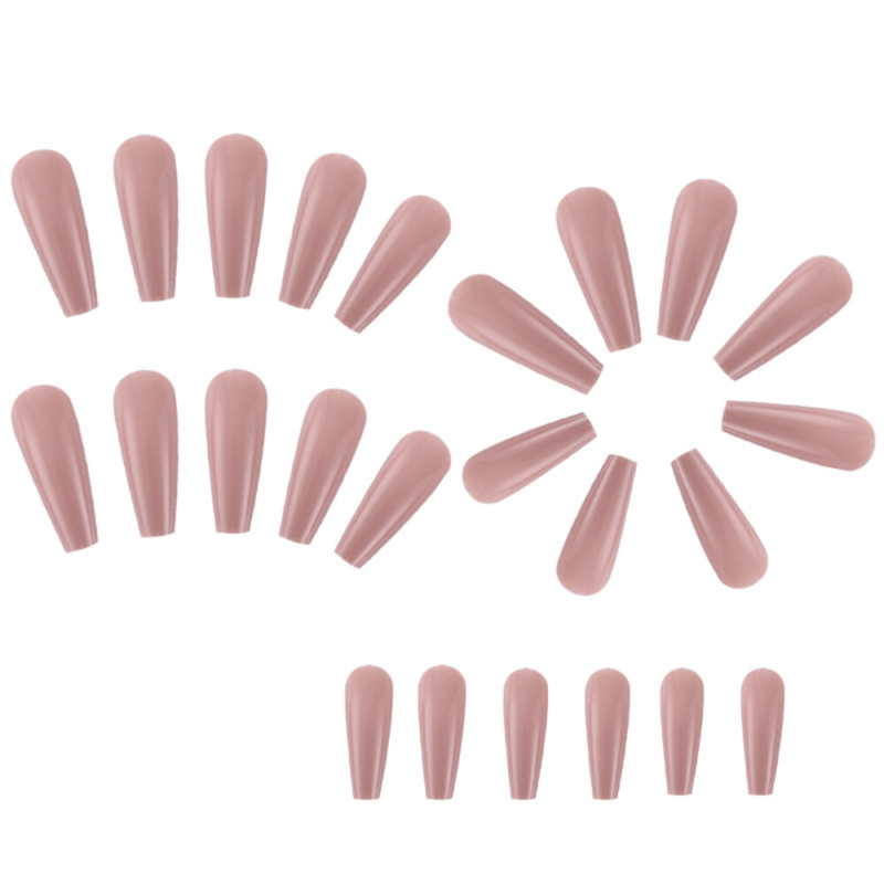Coffin Long Press-On False Nail Fashionable Nude Color Glossy Manicure 24pcs