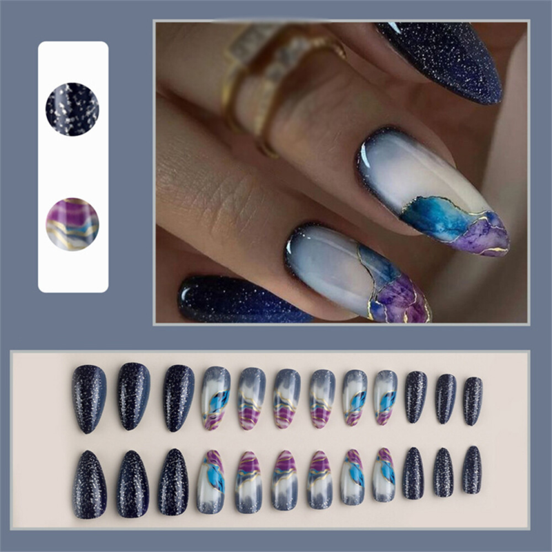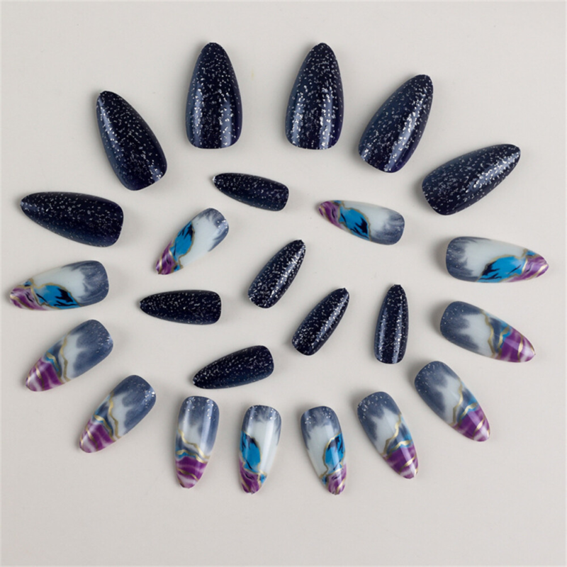 Colorful Blooming False Nail Short Almond Press on Nails for Nail Art 24pcs