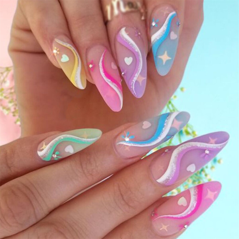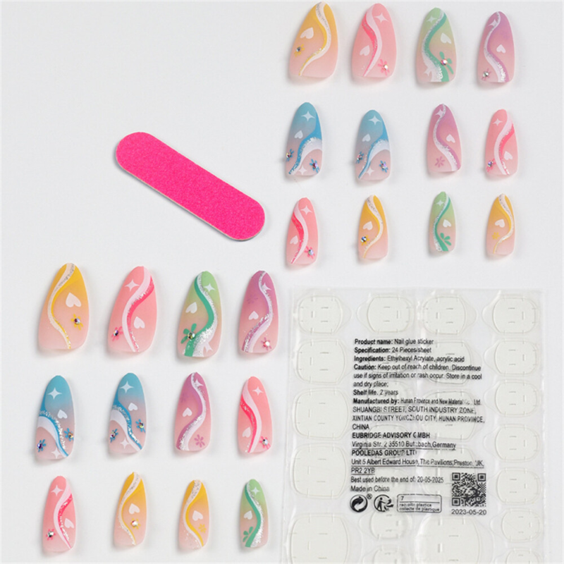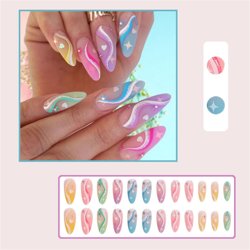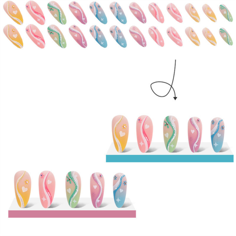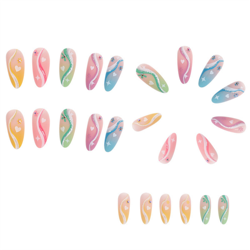 Colorful False Nail with Heart Short Almond Press on Nails for Nail Art 24pcs