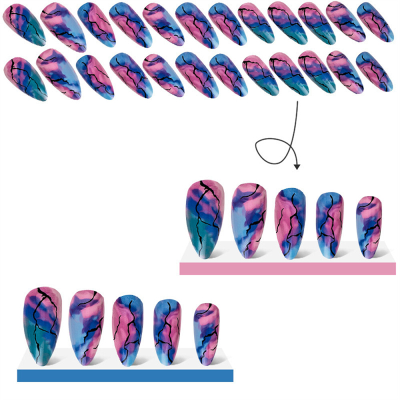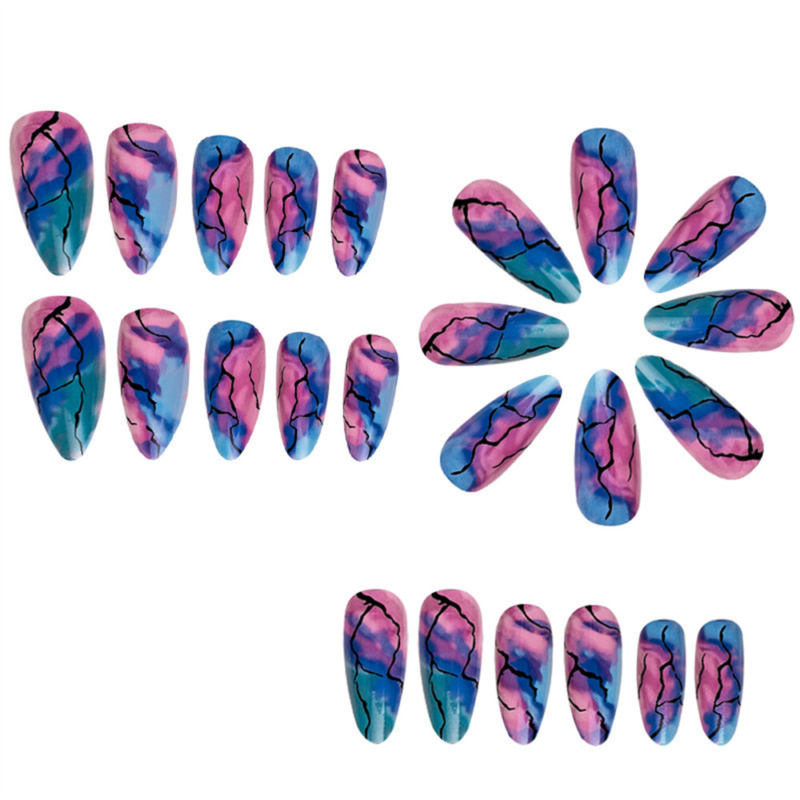 Colorful Marbling False Nail Short Almond Press on Nails for Nail Art 24pcs