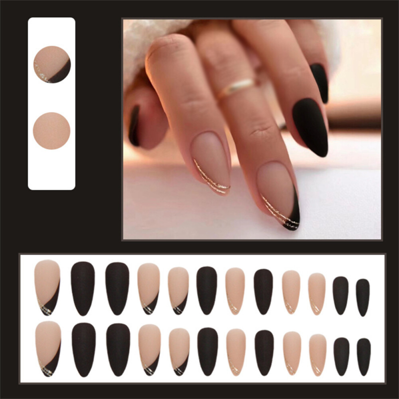 Cool Black French False Nail Short Almond Press on Nails for Nail Art 24pcs