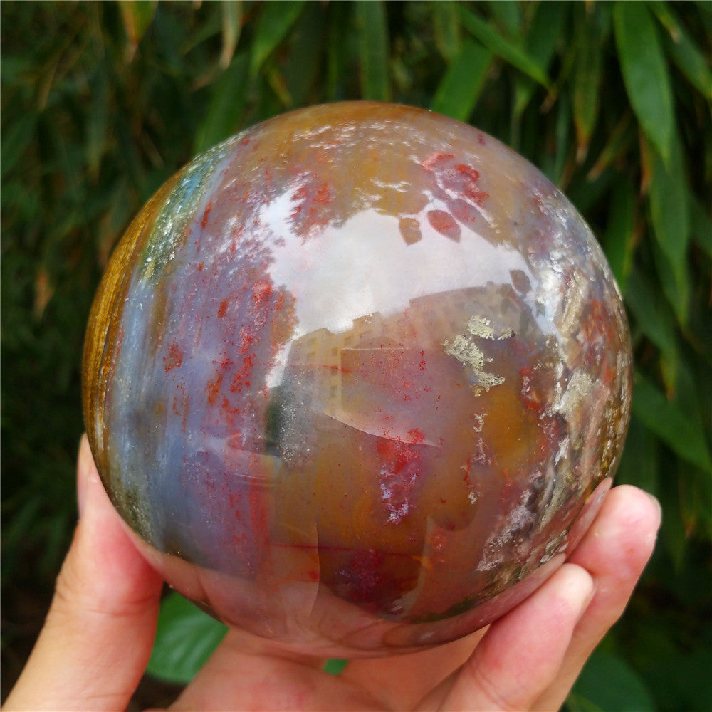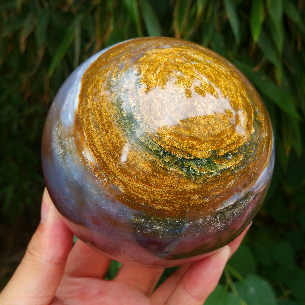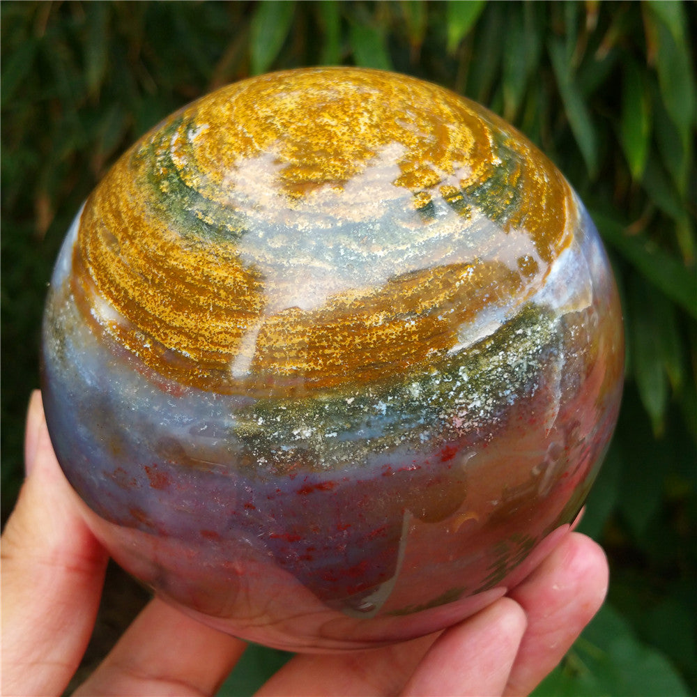 The Ocean Jasper (Madagascar): A variety of Quartz with Spherical Ocean Jasper is a trade name for an orbicular chalcedony, modeling, found only in northwestern Madagascar. The source of the stone was discovered not until 1999. It is metaphysically associated with purification, balancing chakras and both personal and healing ground.