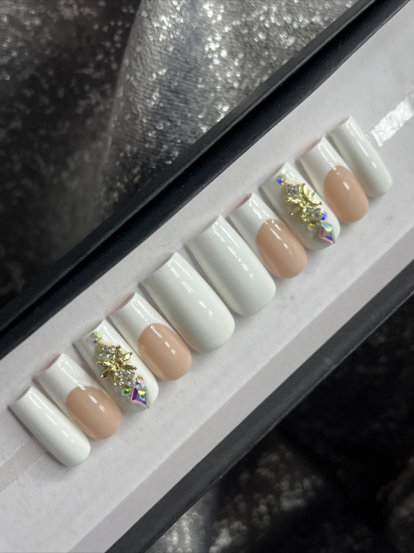 CUSTOM Gel Press On Nails, NUDE FRENCH BLING 10p FULL SET W Kit